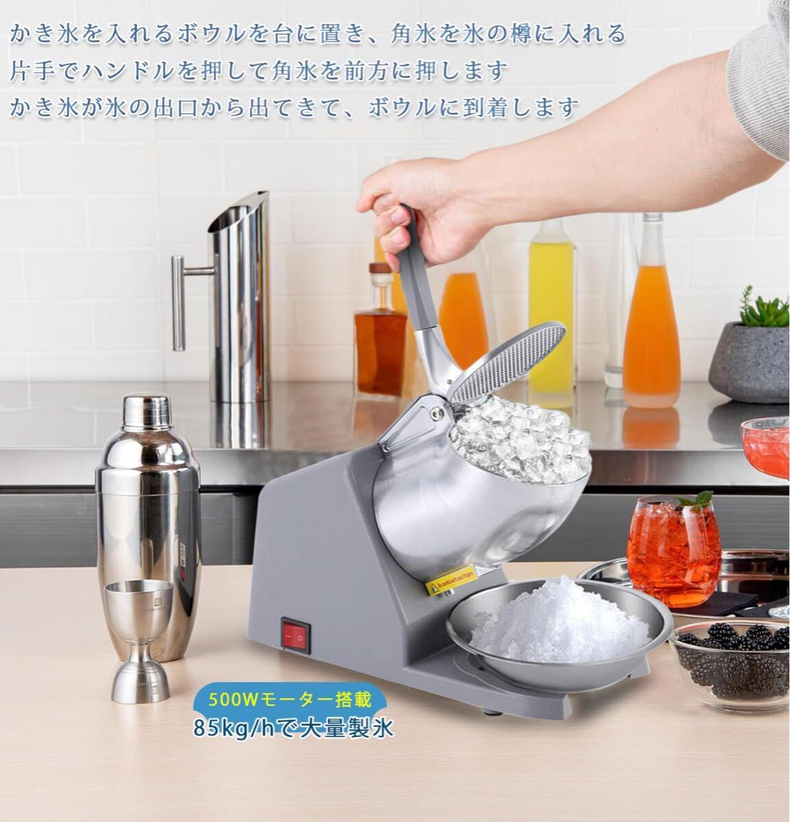 「高出力」:【85kg/hで大量製氷】 500Wモーター搭載で安定したパワーを発揮。1時間あたり最大85kgの砕氷が可能。家庭用から飲食店まで、短時間でふわふわ氷を大量生産。キッチンや飲み物屋の作業台に置いても便利です。収納や持ち運びも簡単です。家庭用にも業務用にも適しています。