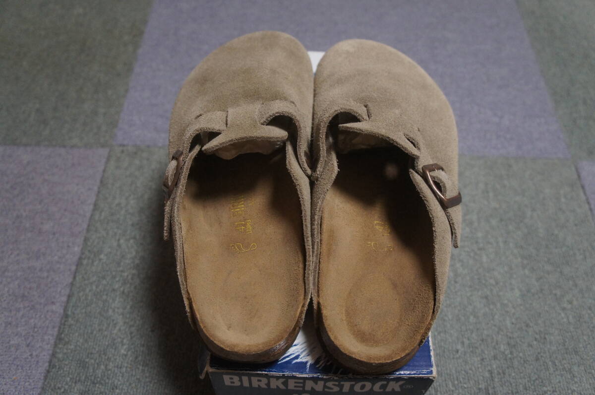送600円 正規 人気カラー 完売  ビルケンシュトック  ボストン スエードレザー  トープ ベージュ サンド クリーニング済み 41 26.5cm   定価24,000円 ユーズドで細かな擦れや汚れはありますが、目立つダメージや汚れはありません。若干ソールのかかとの減りはありますが、全体的には残っていてまだまだ使用して頂けると思います。元箱は付属しません。