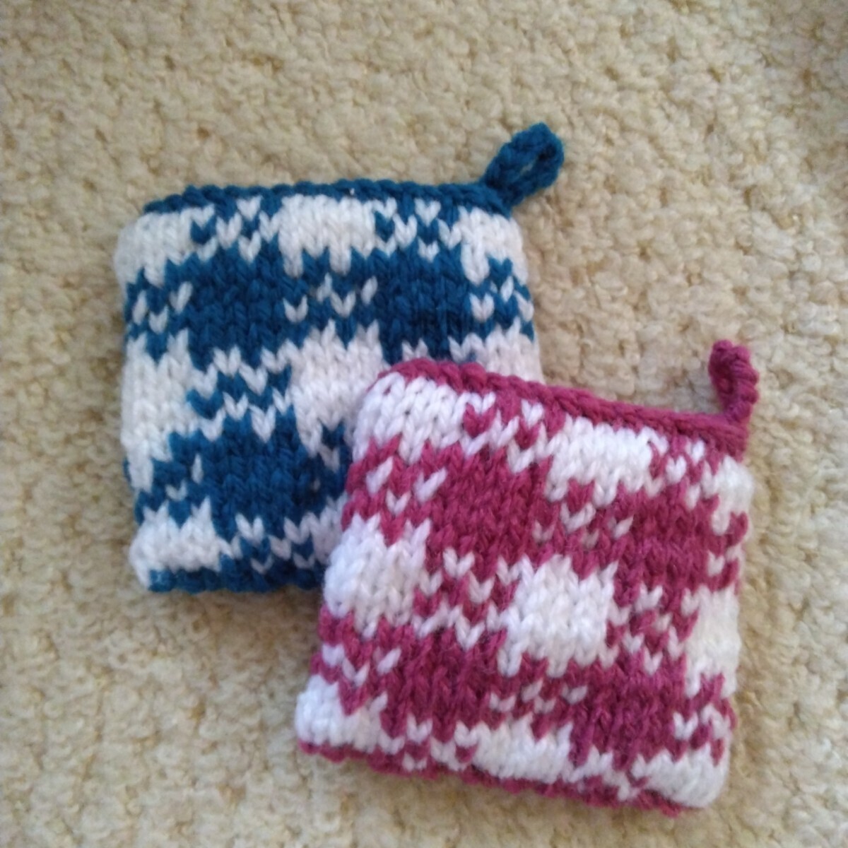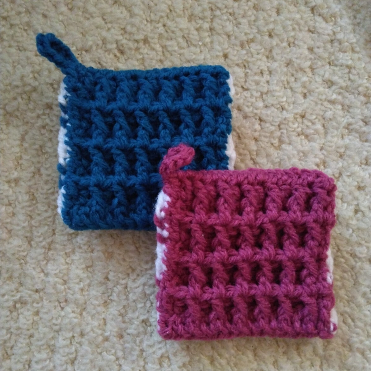 アクリルたわし 2枚重ね9×10cm 格子柄