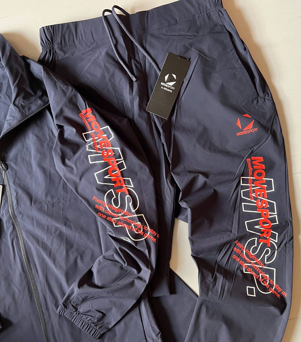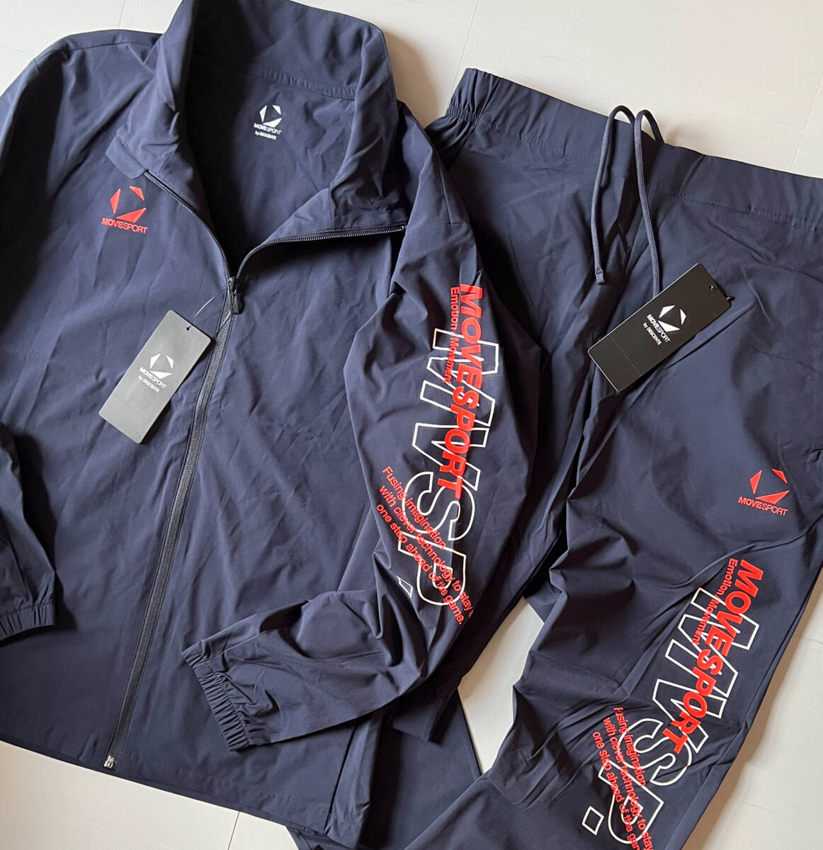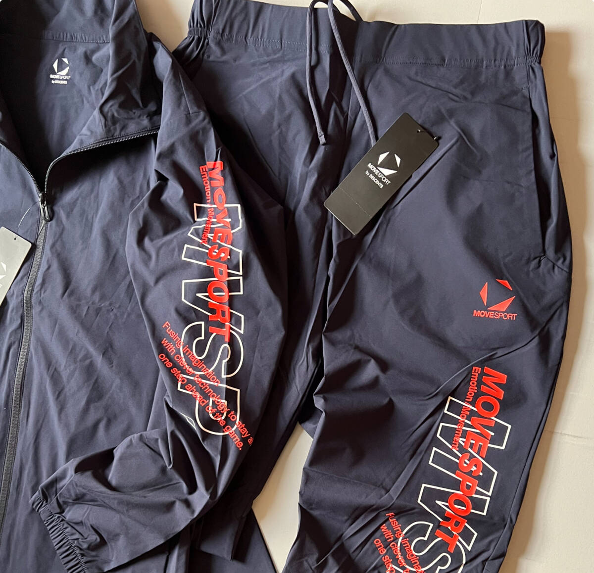DESCENTE■デサント〔L〕クロスジャケット/パンツ 上下セット 撥水・ストレッチ・UPF50+ ネイビー/赤 セットアップ 25'秋 通年モデル