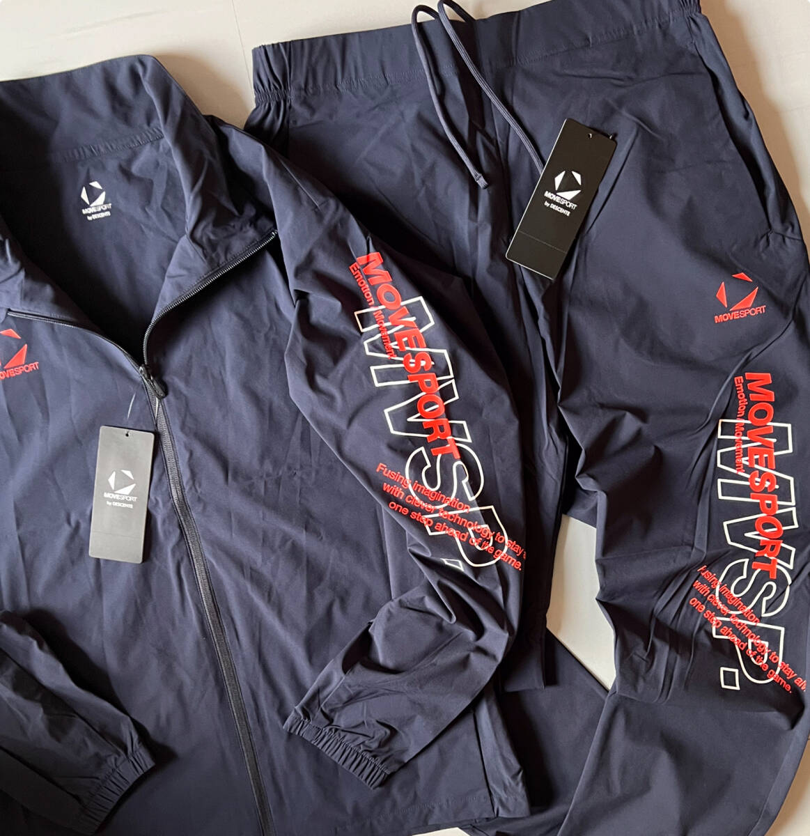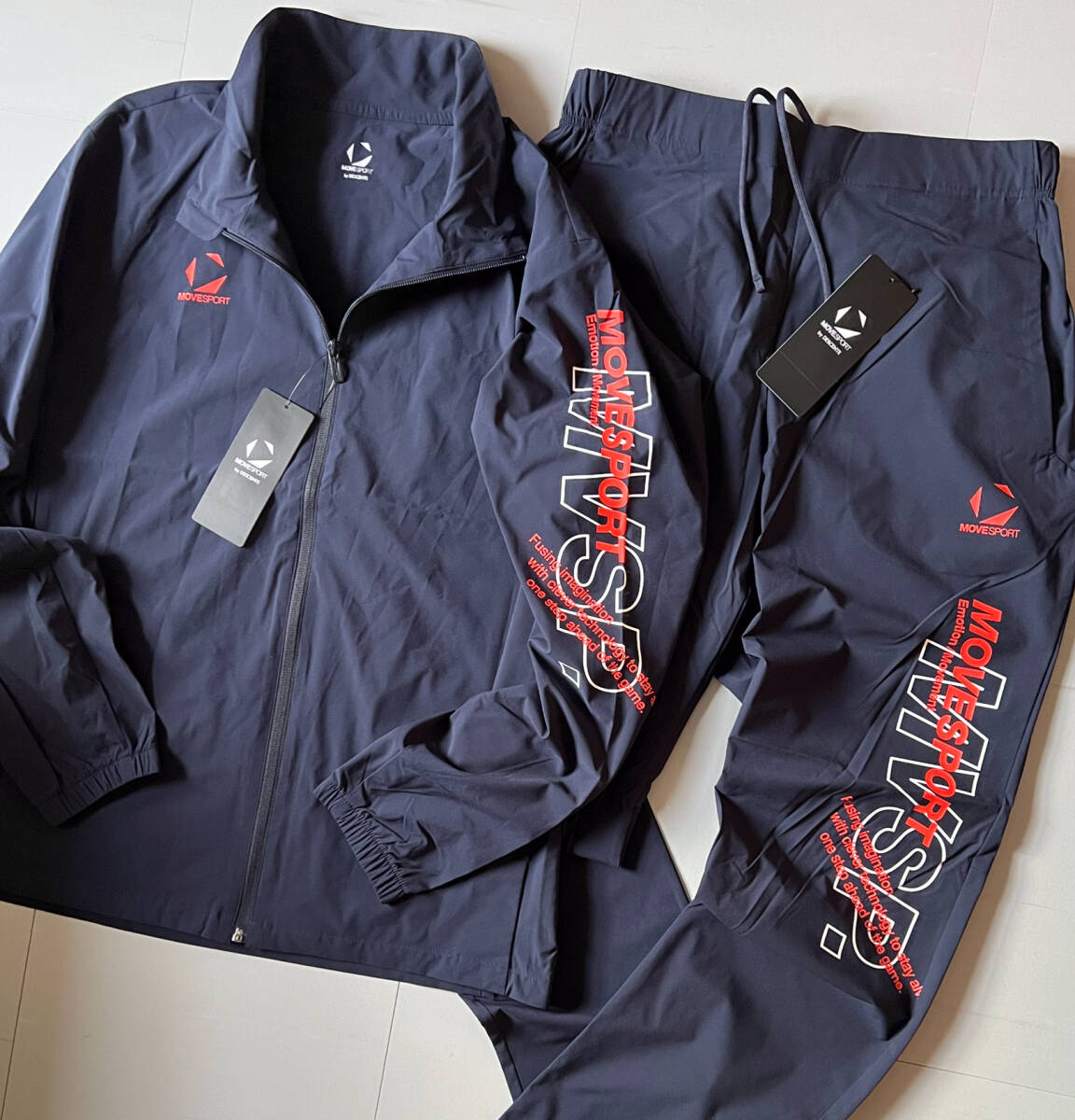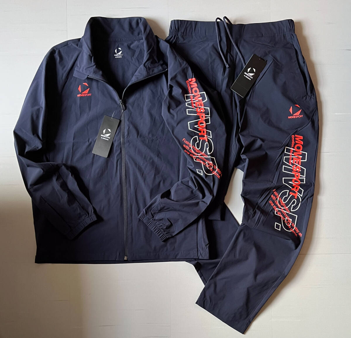 DESCENTE■デサント〔L〕クロスジャケット/パンツ 上下セット 撥水・ストレッチ・UPF50+ ネイビー/赤 セットアップ 25'秋 通年モデル