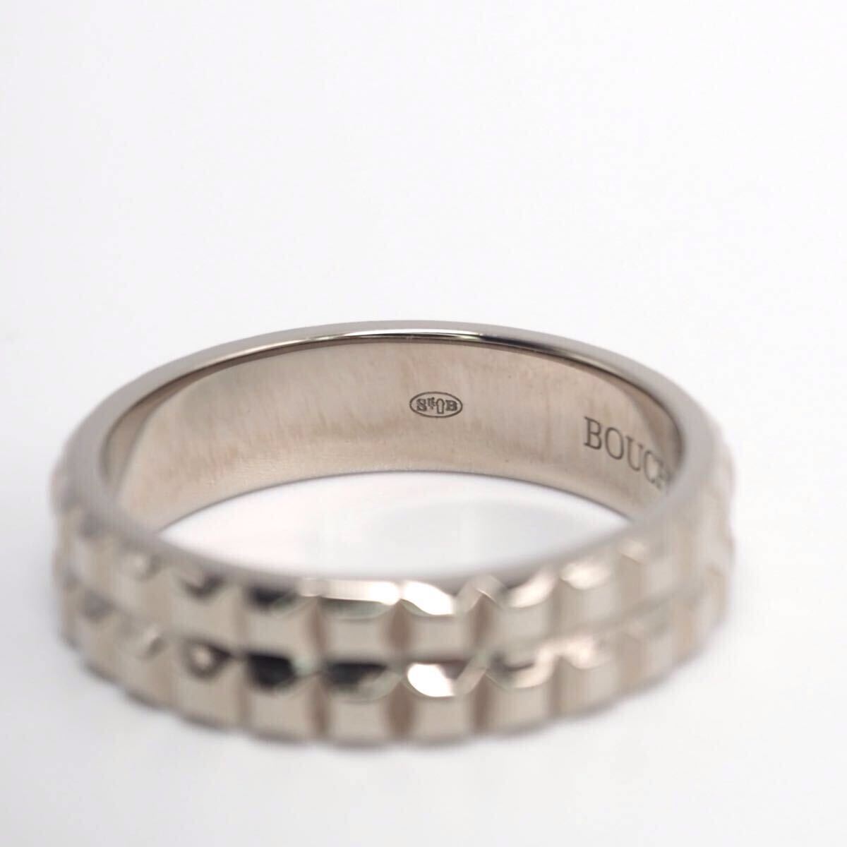 ブシュロンの代表的なモチーフのひとつであるクルドパリ。ダイヤが散りばめられたような煌めきを放ち、手元を上品な印象に仕上げます。