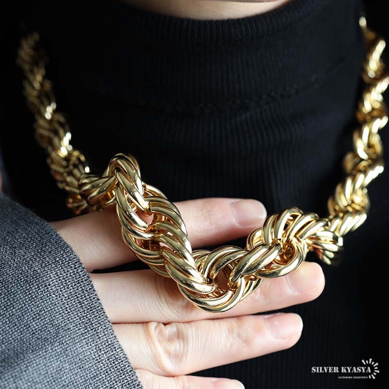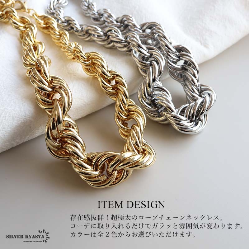 存在感抜群!超極太のロープチェーンネックレス。コーデに取り入れるだけでガラッと雰囲気が変わります。カラーは全2色からお選びいただけます。