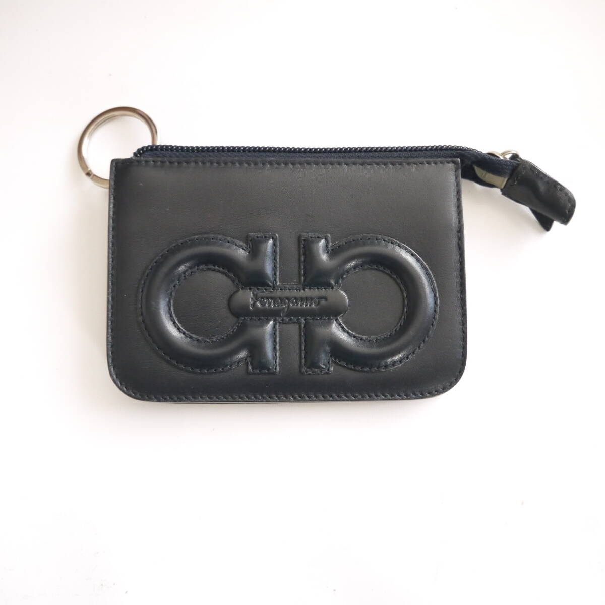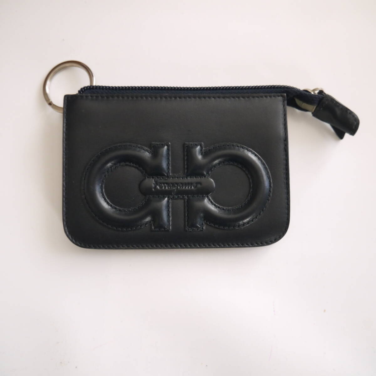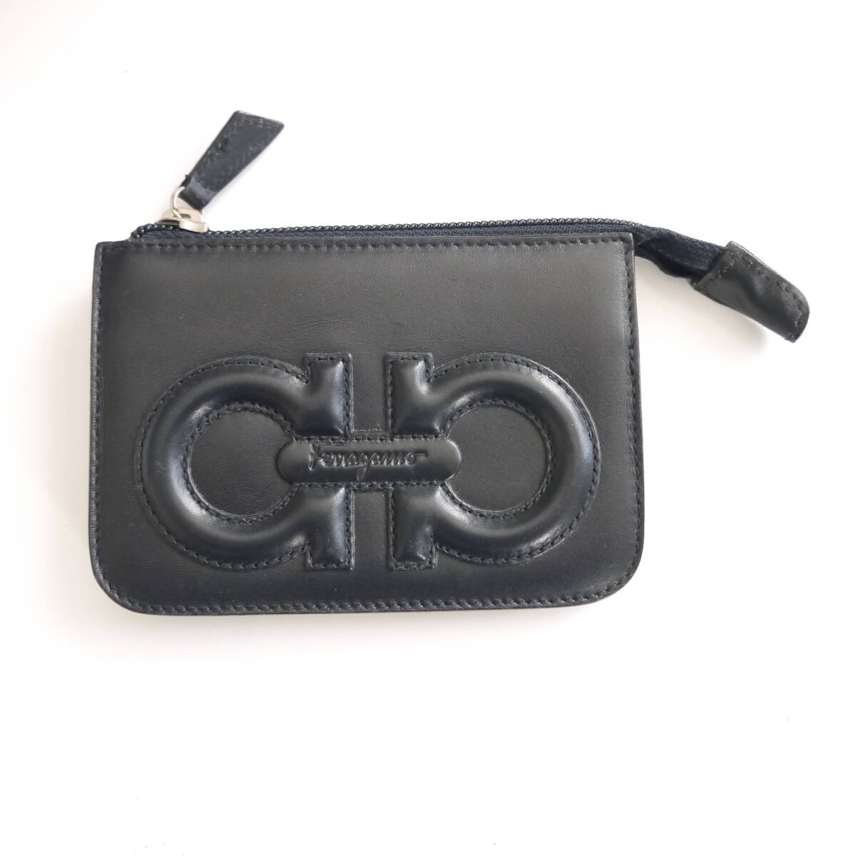 $ 美品 $ 激レア◆ Salvatore Ferragamo フェラガモ◆ 大きめ 立体 ガンチーニ◆ キーリング 本革 レザー◆ コインケース 小銭入れ 財布 黒