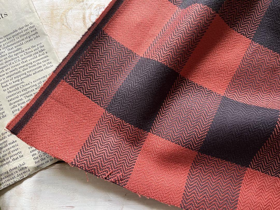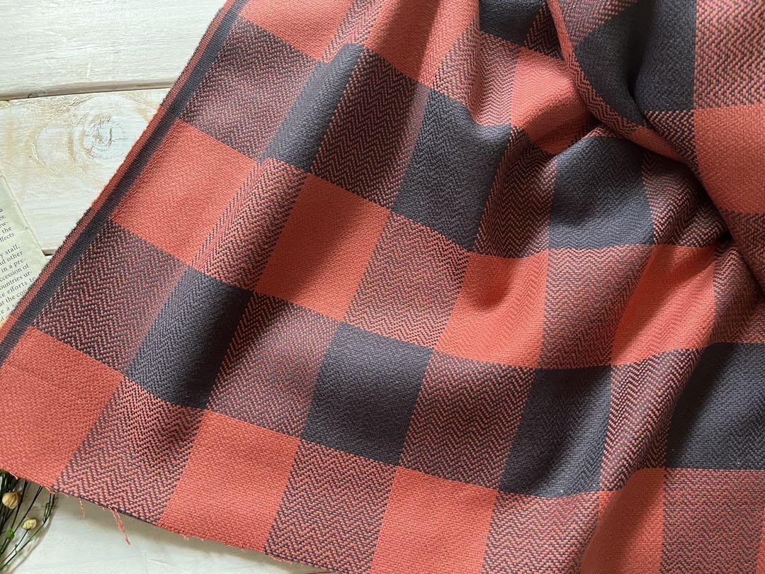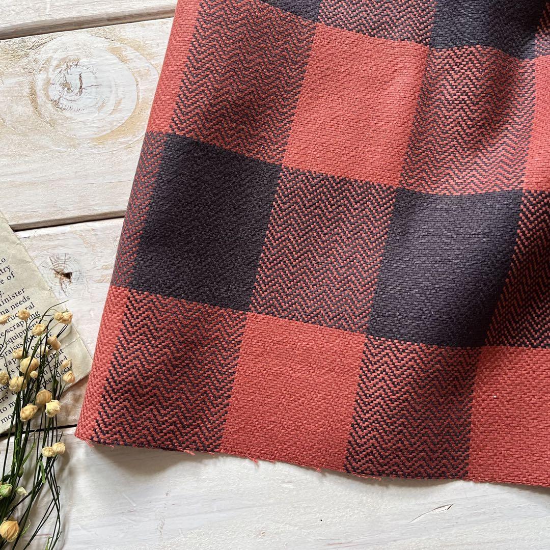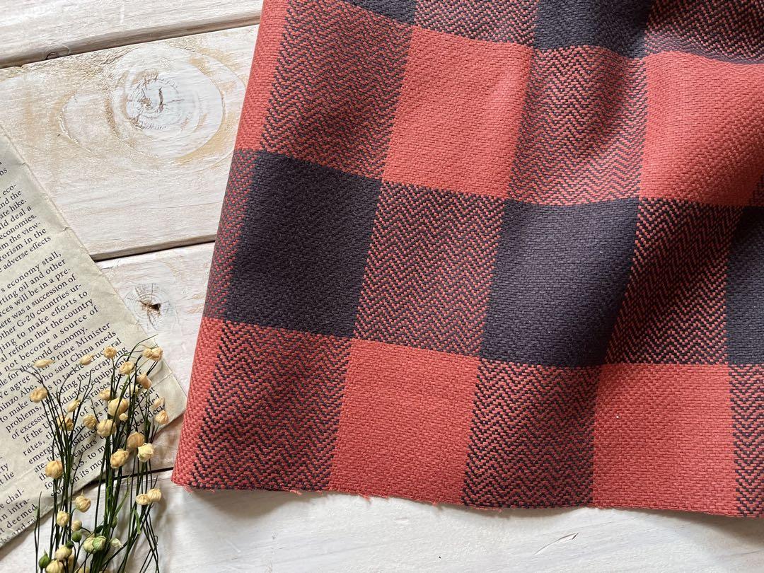 ◇0.5m◇延長可能◇◇■綿100%■バッファローチェックへリンボン裏起毛■レンガXチャコール