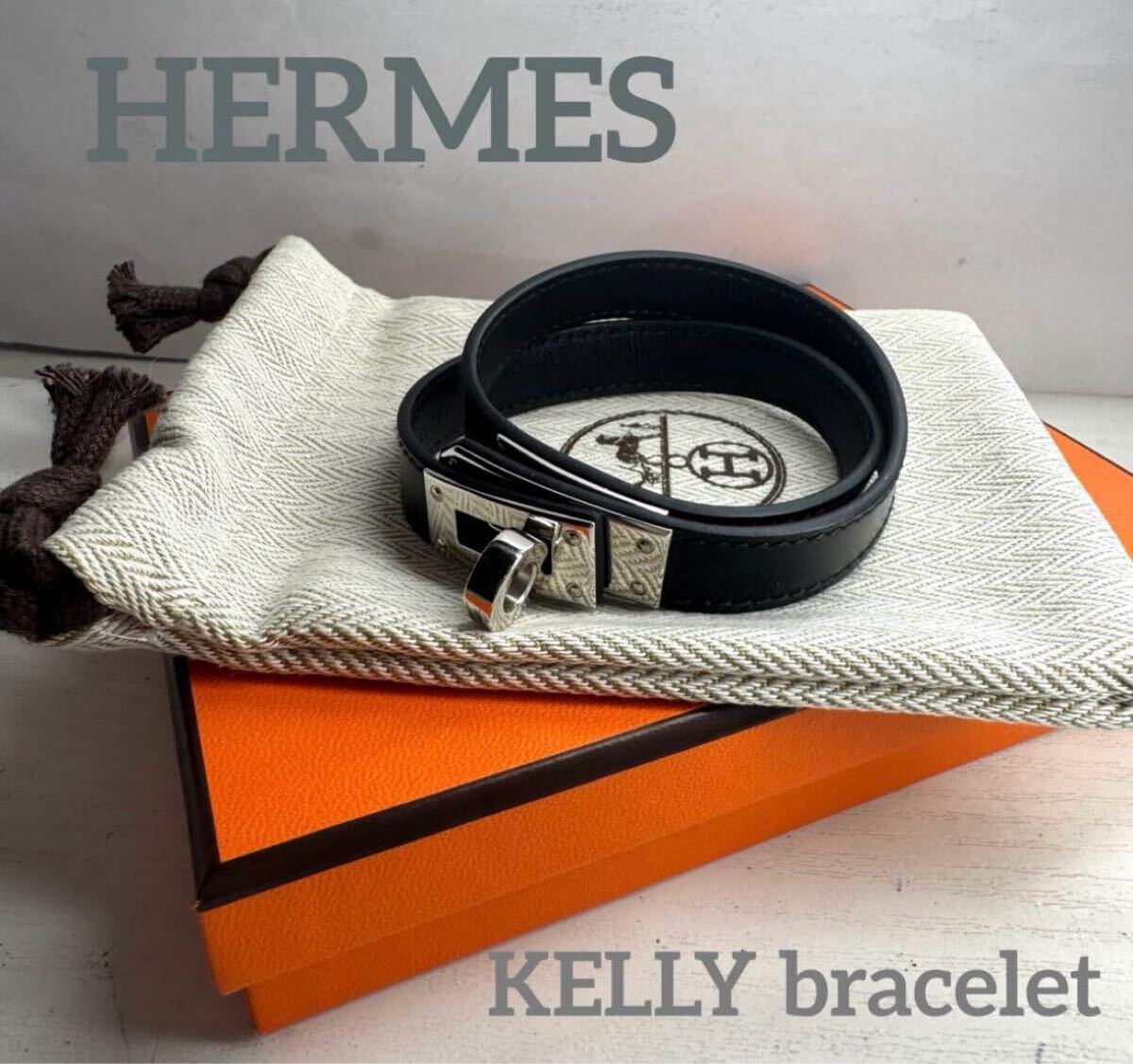 HERMES エルメス ケリーブレスレット ドゥブルトゥール シルバー×ブラック 美品 vrz