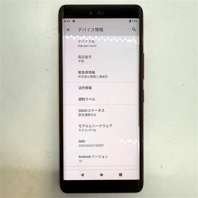 Rakuten Hand P710 eSIM 初期化済み IMEI〇 保管品 電池状態良好 スマートフォン 1円出品 本体のみ 赤色 コンパクト android 携帯 22954 | ||