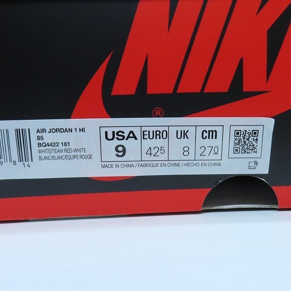 NIKE/ナイキ AIR JORDAN 1 HIGH 85/エアジョーダン1 ハイ メタリックバーガンディ BQ4422-161/27.0 /080 | |||||||||||||||||||||||||