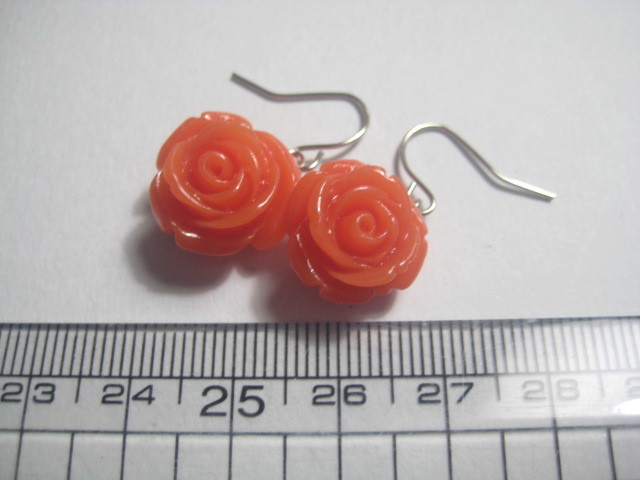 オレンジ色 薔薇のピアス 1ペアです。