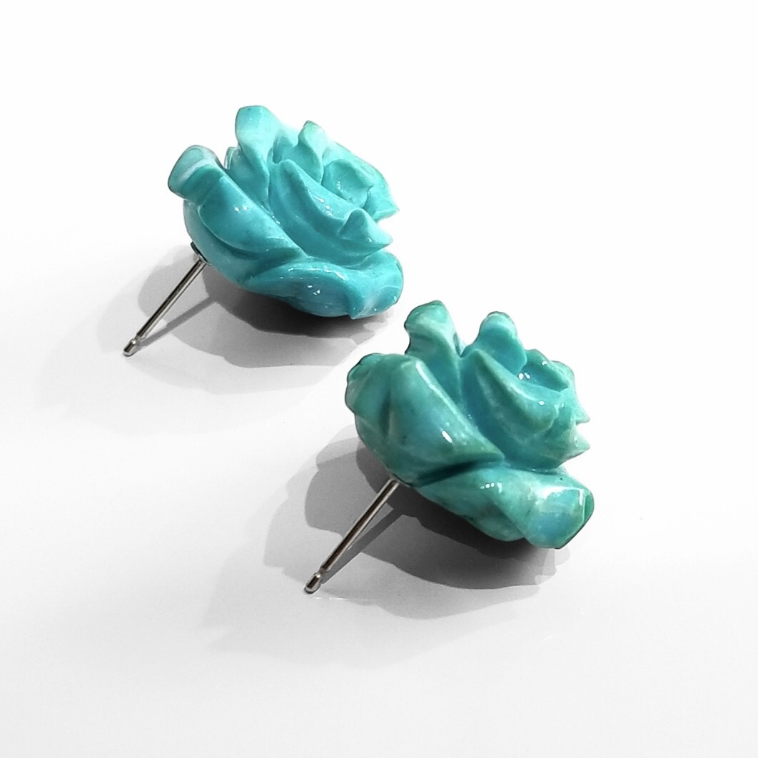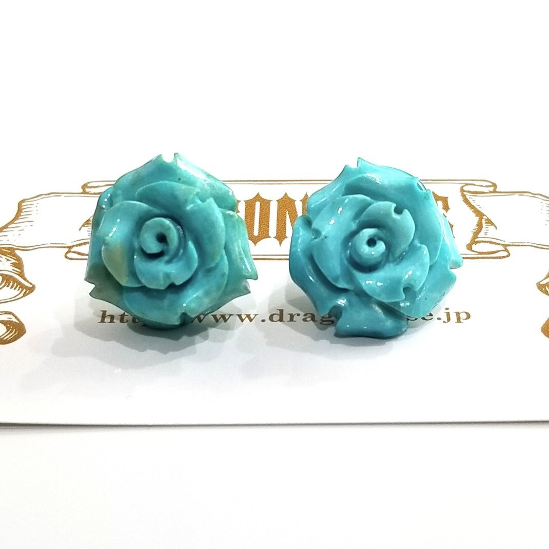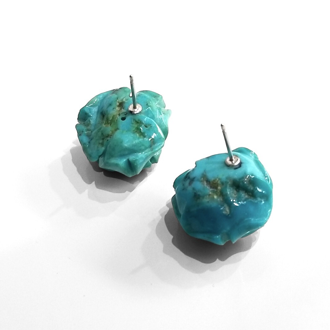 天然のターコイズを手彫りした色も形も美しいピアスです。
