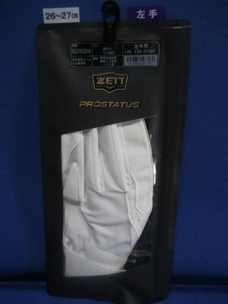 送料無料◆捕手用守備手袋◆左手◆ホワイト◆L◆プロステイタス◆ゼット◆26-27㎝◆限定品◆即納◆BG23022HS◆洗える◆高校野球対応