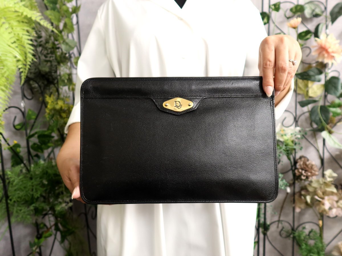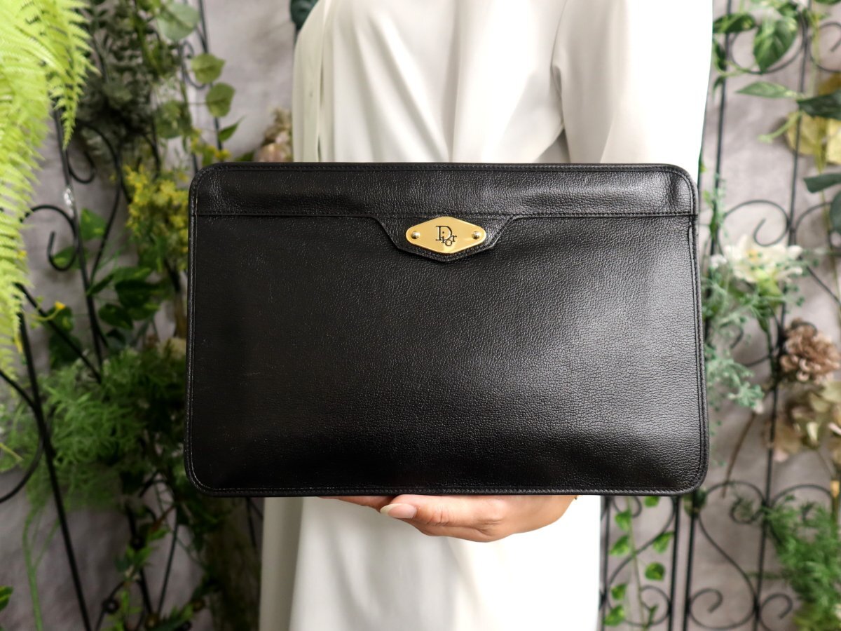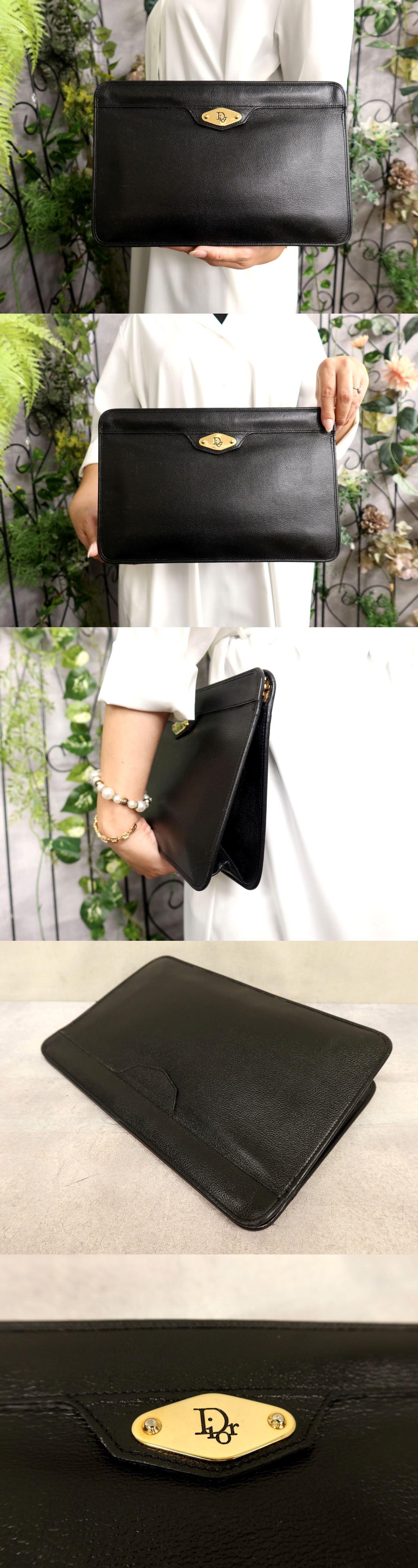●超美品●クリスチャン・ディオール●バネ口金具●カーフ レザー 本革●セカンド クラッチ バッグ●黒●G金具●ヴィンテージ●Js60673
