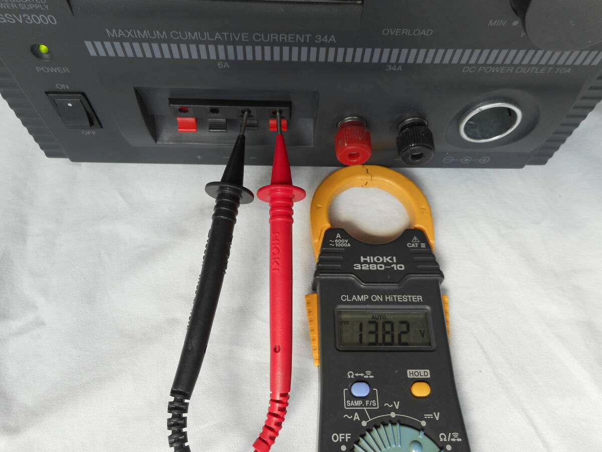 出力電圧:13.8Vに再調節、最大負荷34A動作確認済み、35A過電流保護回路及び冷却ファン動作確認済み。