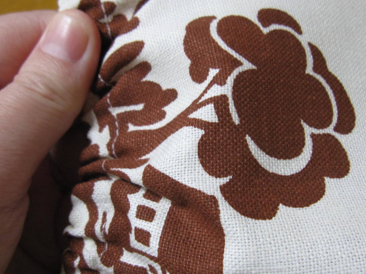 柄は、オフ白×こげ茶で、カントリー柄/ベージュ色のリブ (手首)