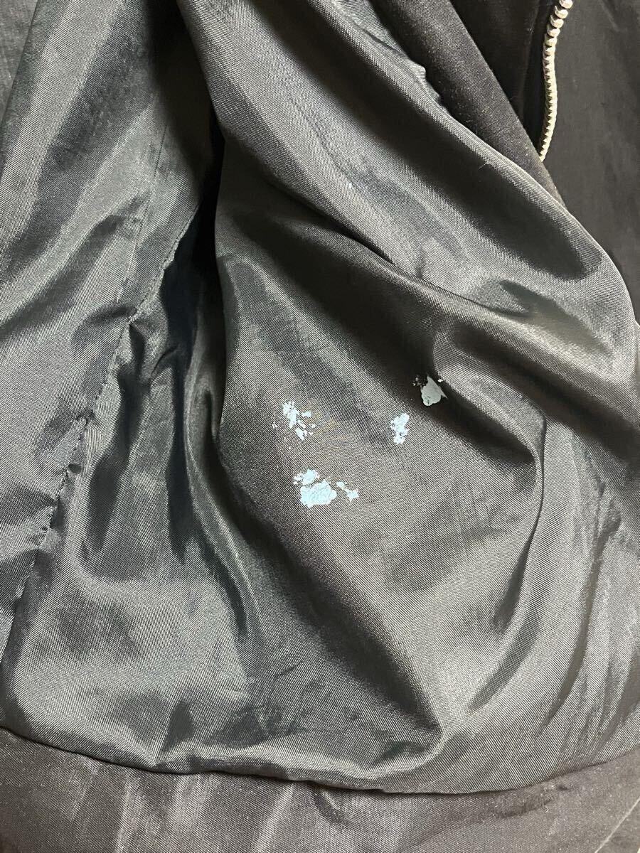 ブランド名 Designer Group By Mr.Ronald・表記サイズ 40・肩幅 48cm・身幅 57cm・着丈 52cmです。素材はナイロンです。前見頃の裏地にペンキの様な物が付着しています。表面への影響はありません。全体的にはキレイな状態です。