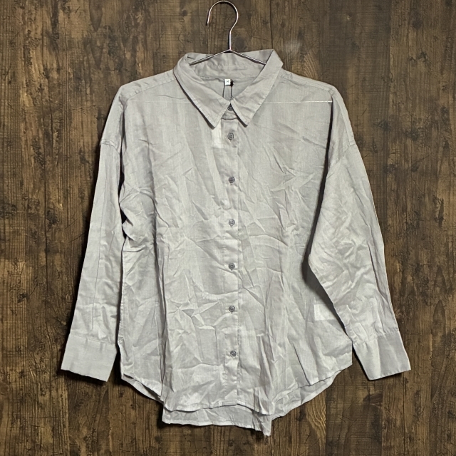 C34◇ブランド名不明 長袖シャツ グレージュ レディース Mサイズ 中古品