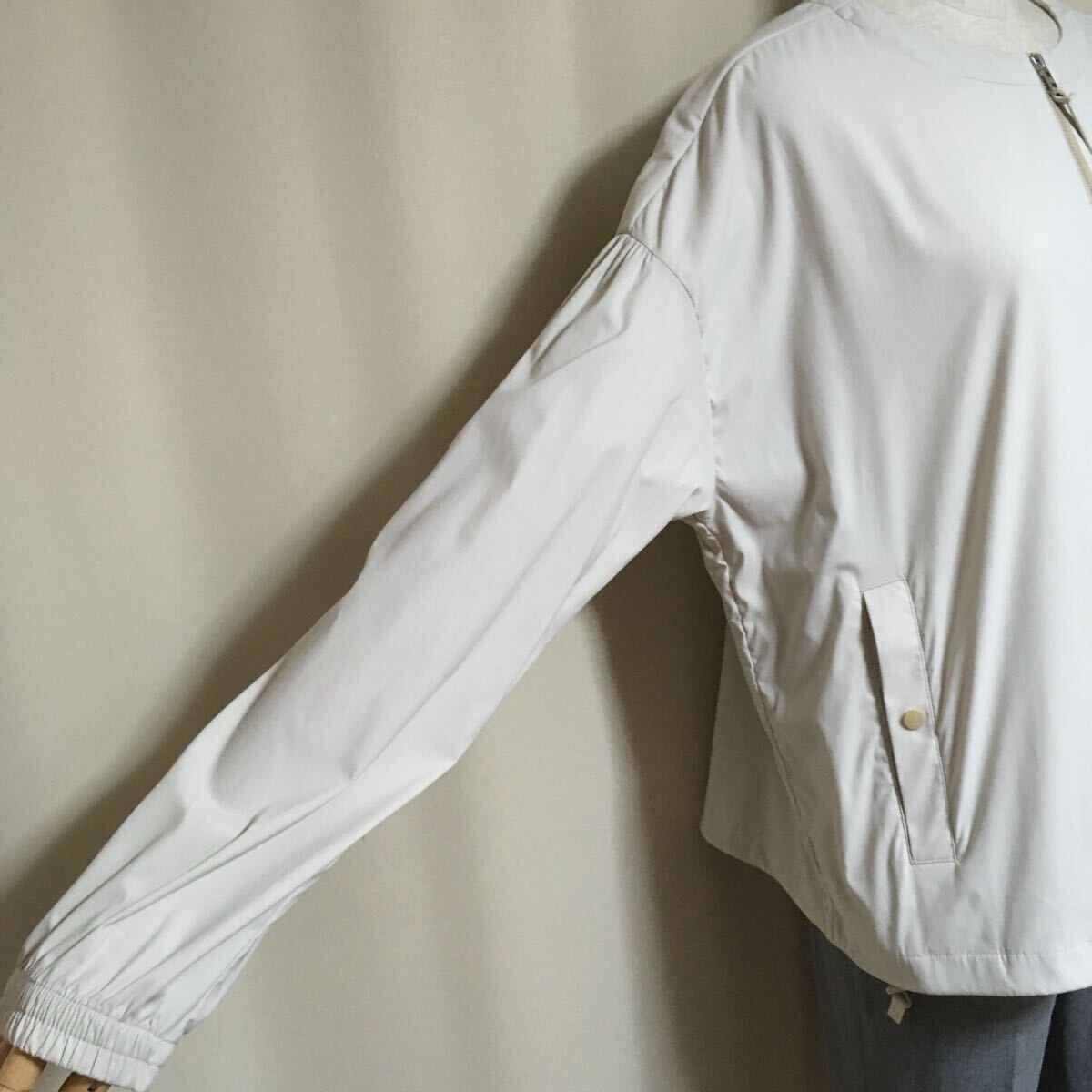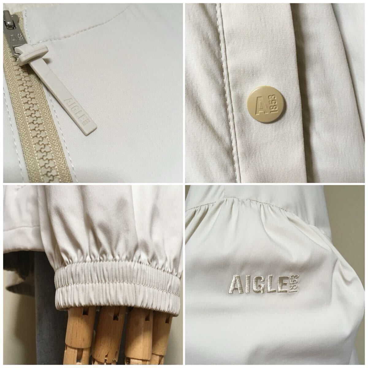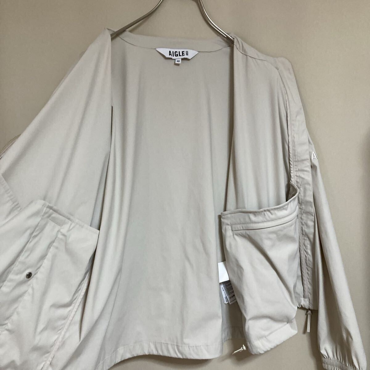 美品◇AIGLE エーグル 定価2.2万 洗える 吸水速乾 UVカット 軽量ブルゾン ノーカラージップナイロンジャケット 40/L ベージュ レディース