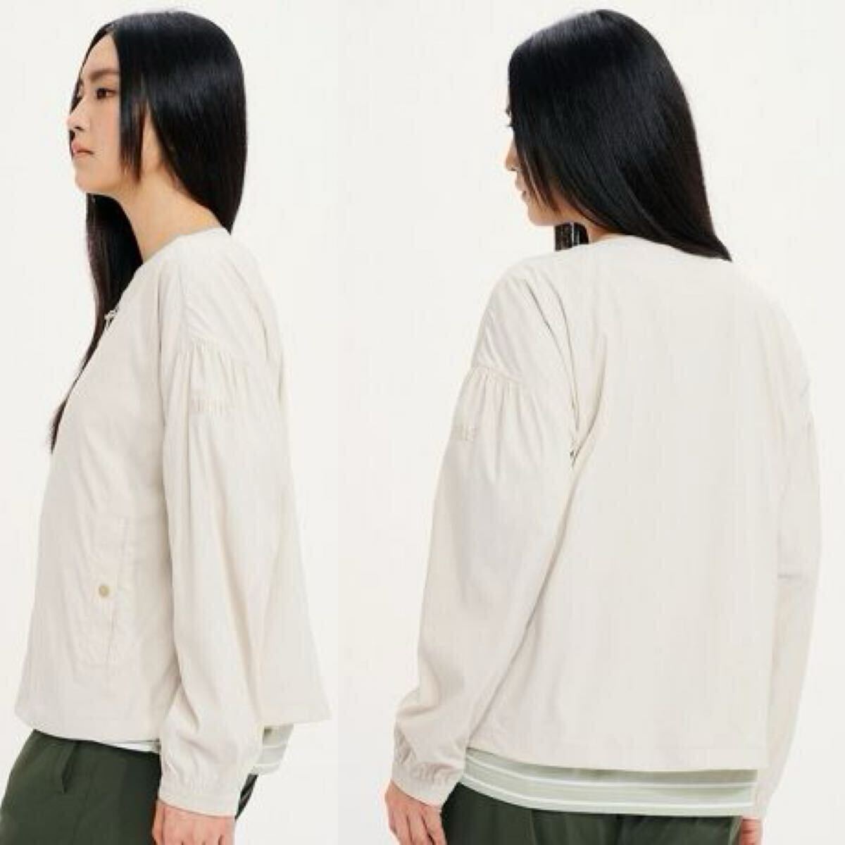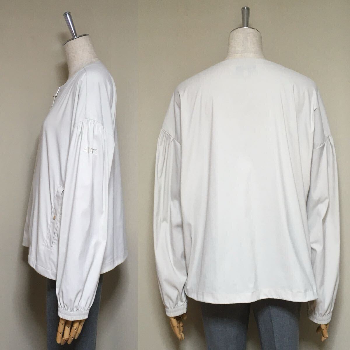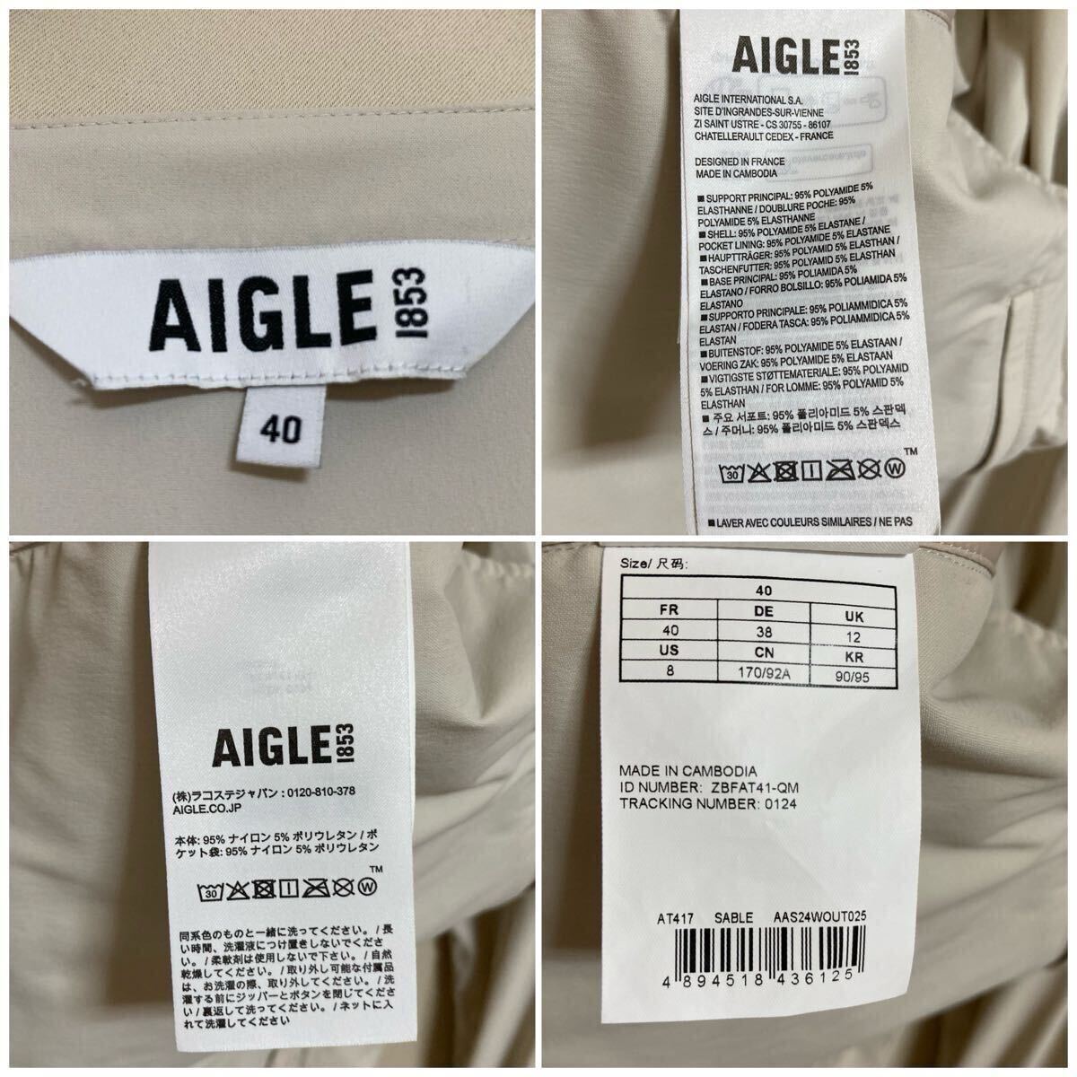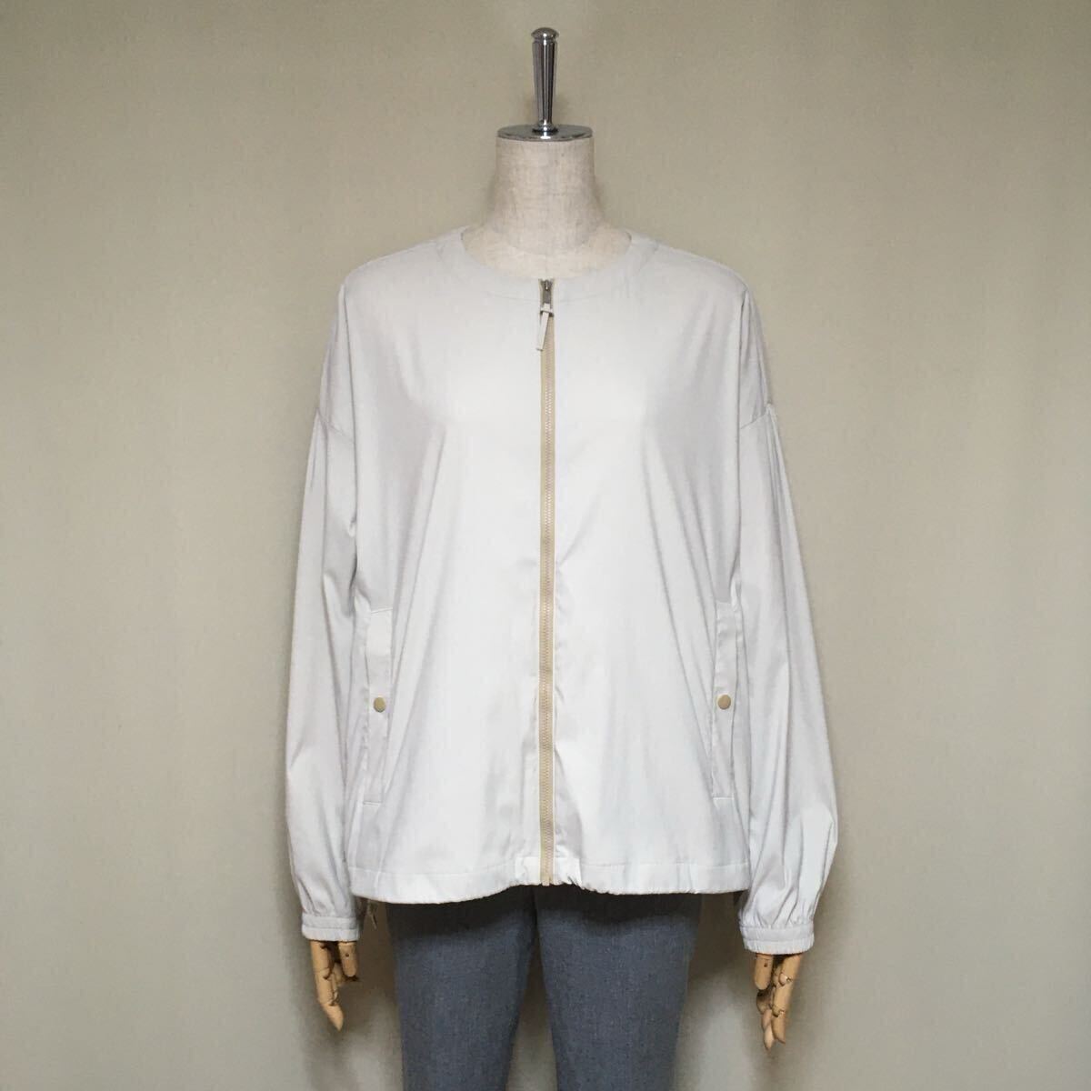 美品◇AIGLE エーグル 定価2.2万 洗える 吸水速乾 UVカット 軽量ブルゾン ノーカラージップナイロンジャケット 40/L ベージュ レディース