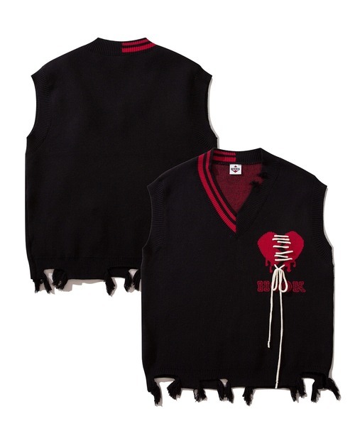 参考商品名:HOOK -original- 傷だらけのアシンメトリーニットベスト