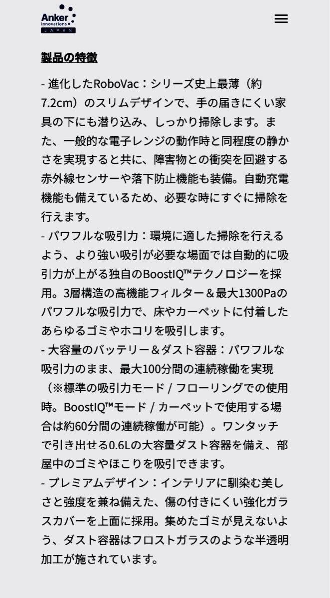 超薄型でありながら、BoostIQテクノロジー搭載かつ最大1300Paの吸引力を繰り出すEufy RoboVac 11Sは、床やカーペットに付着したあらゆるゴミやホコリを吸引することができます。