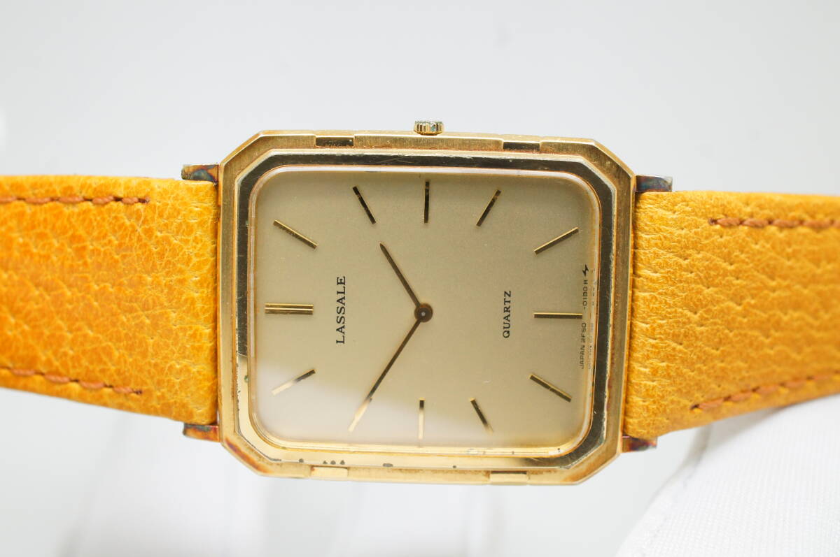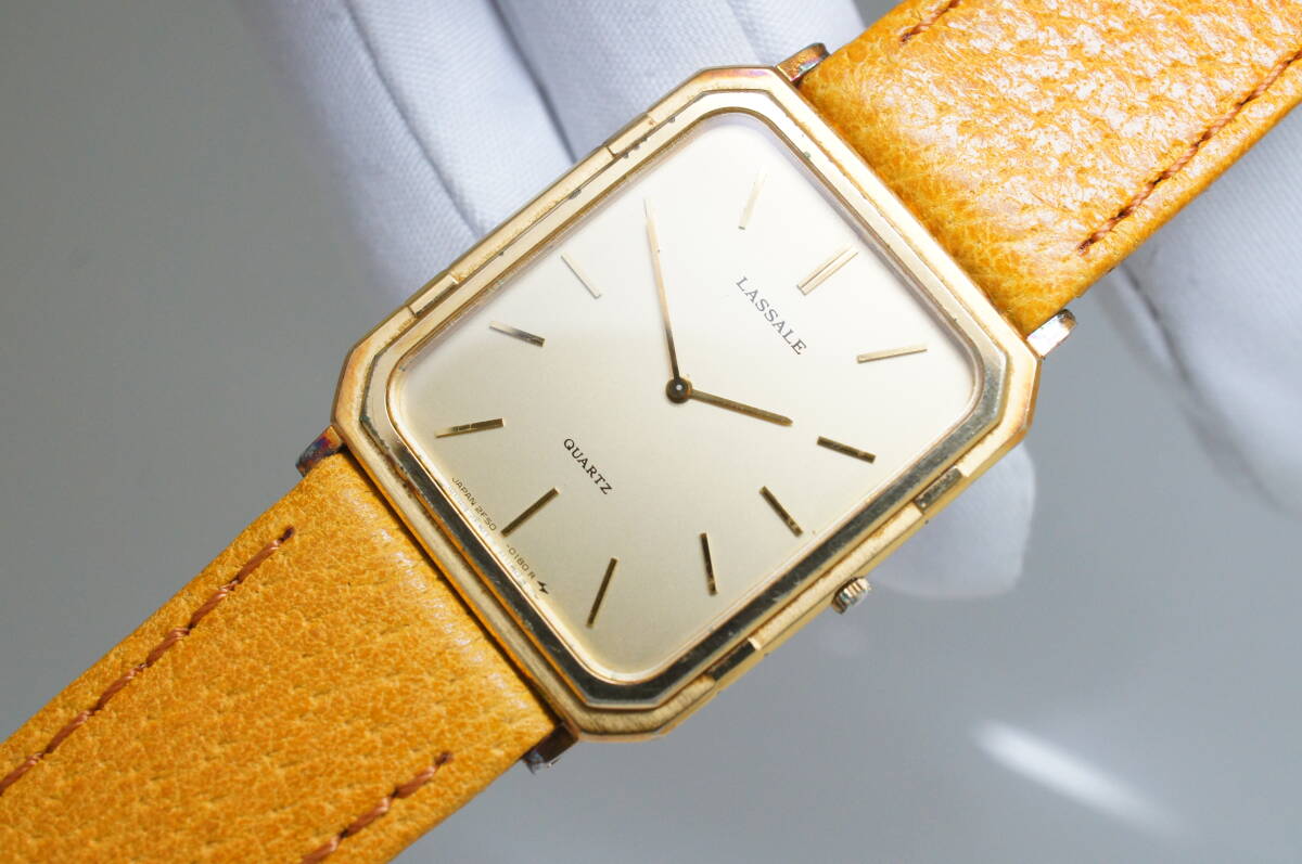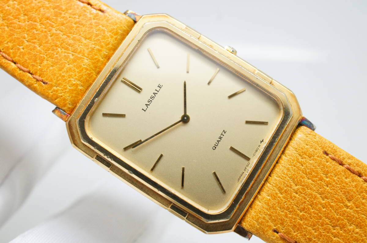 Z96●作動良好 未使用ベルト SEIKO セイコー LASSALE ラサール 2F50-5149 金文字盤 メンズ腕時計 ゴールド金 お洒落 クォーツ