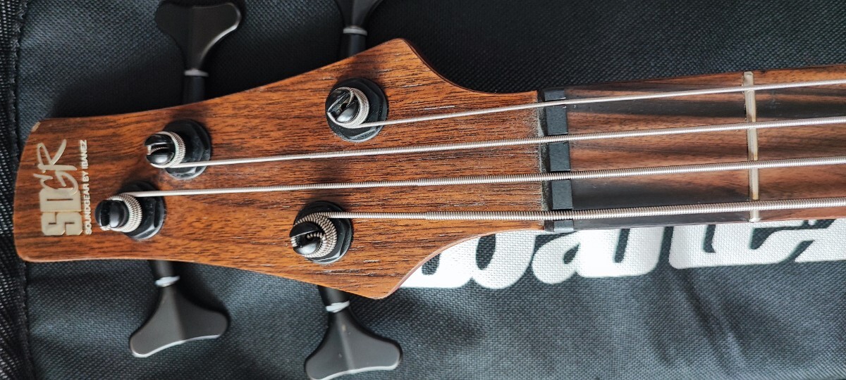 マホガニーボディの採用が多いアイバニーズには珍しいアッシュボディを使用していて、SRタイプにしては重めの個体です。それゆえ、一般的なアイバニーズと比べて出音の重心が高く、スラップを多用する方には切れの良いプル音を楽しめるベースかと思います。