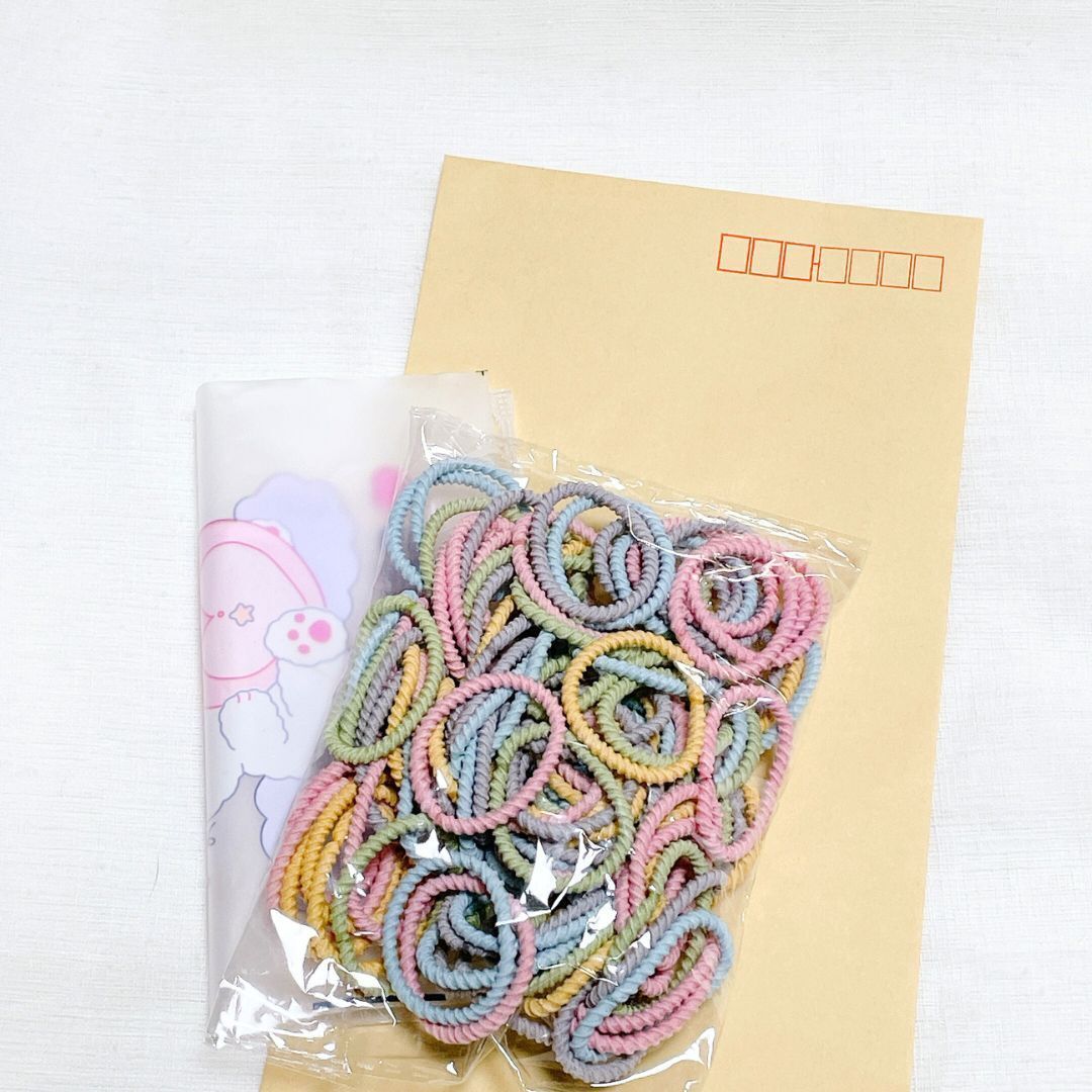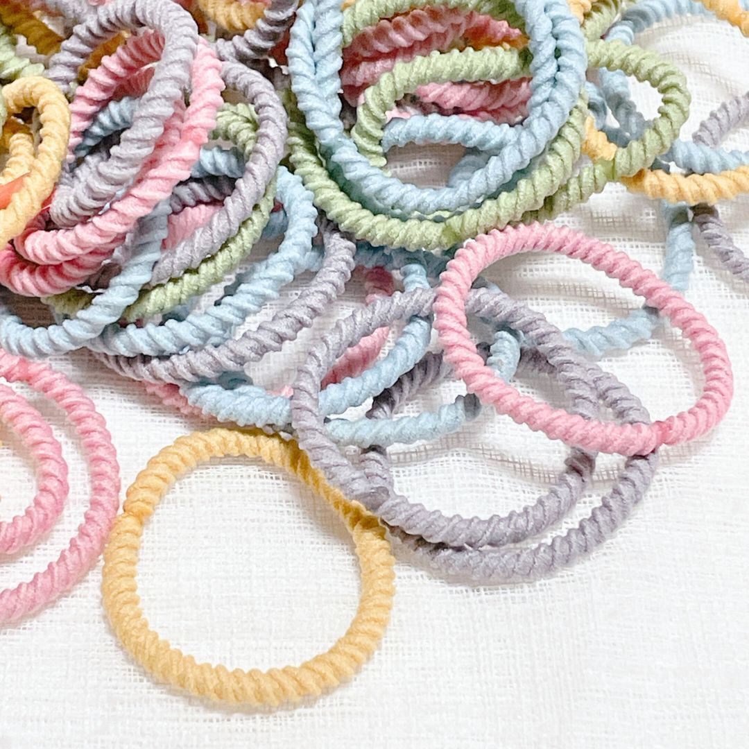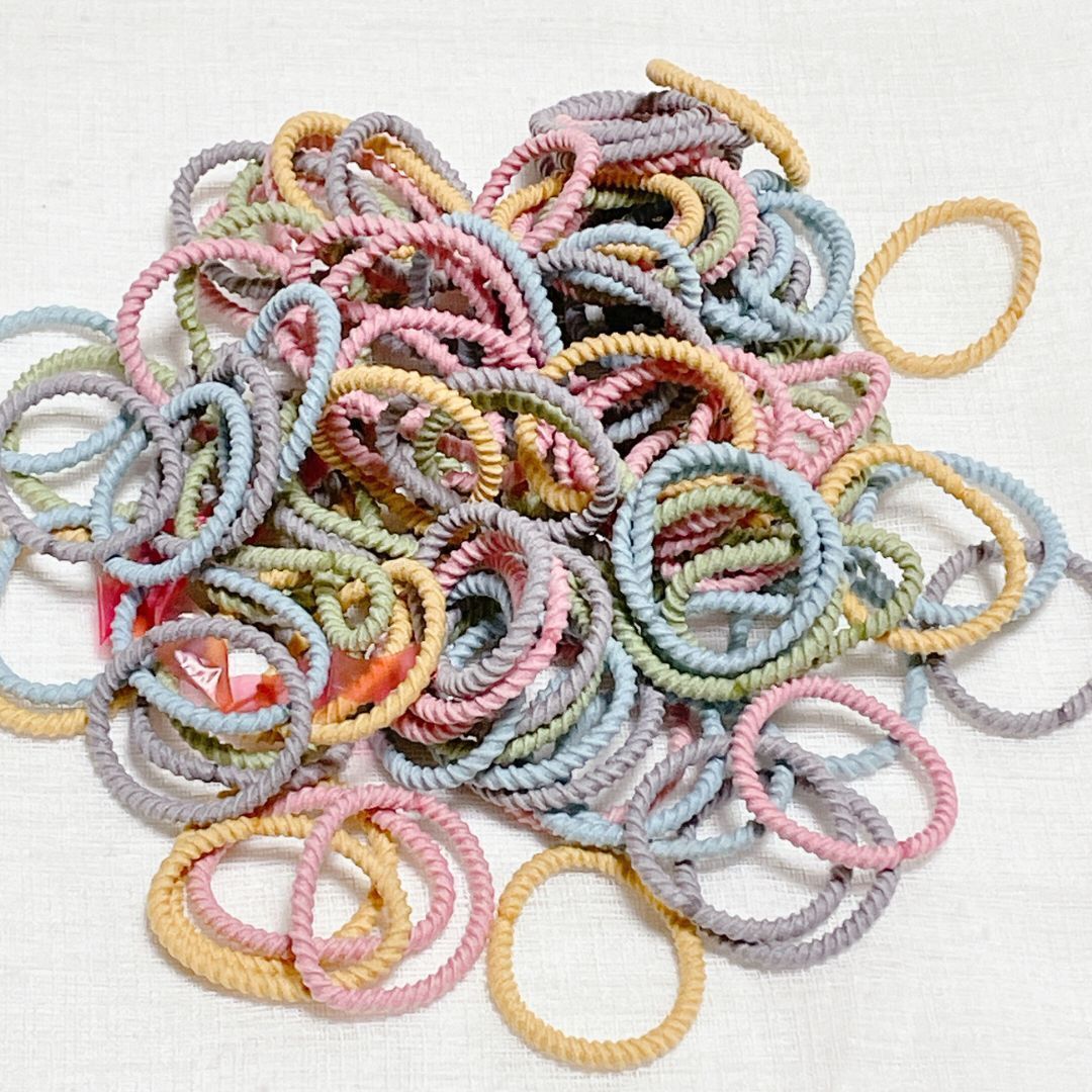 直径約3cmの少し大きめサイズが嬉しい、パステルカラーのリングゴム100本セットまとめ売りです。