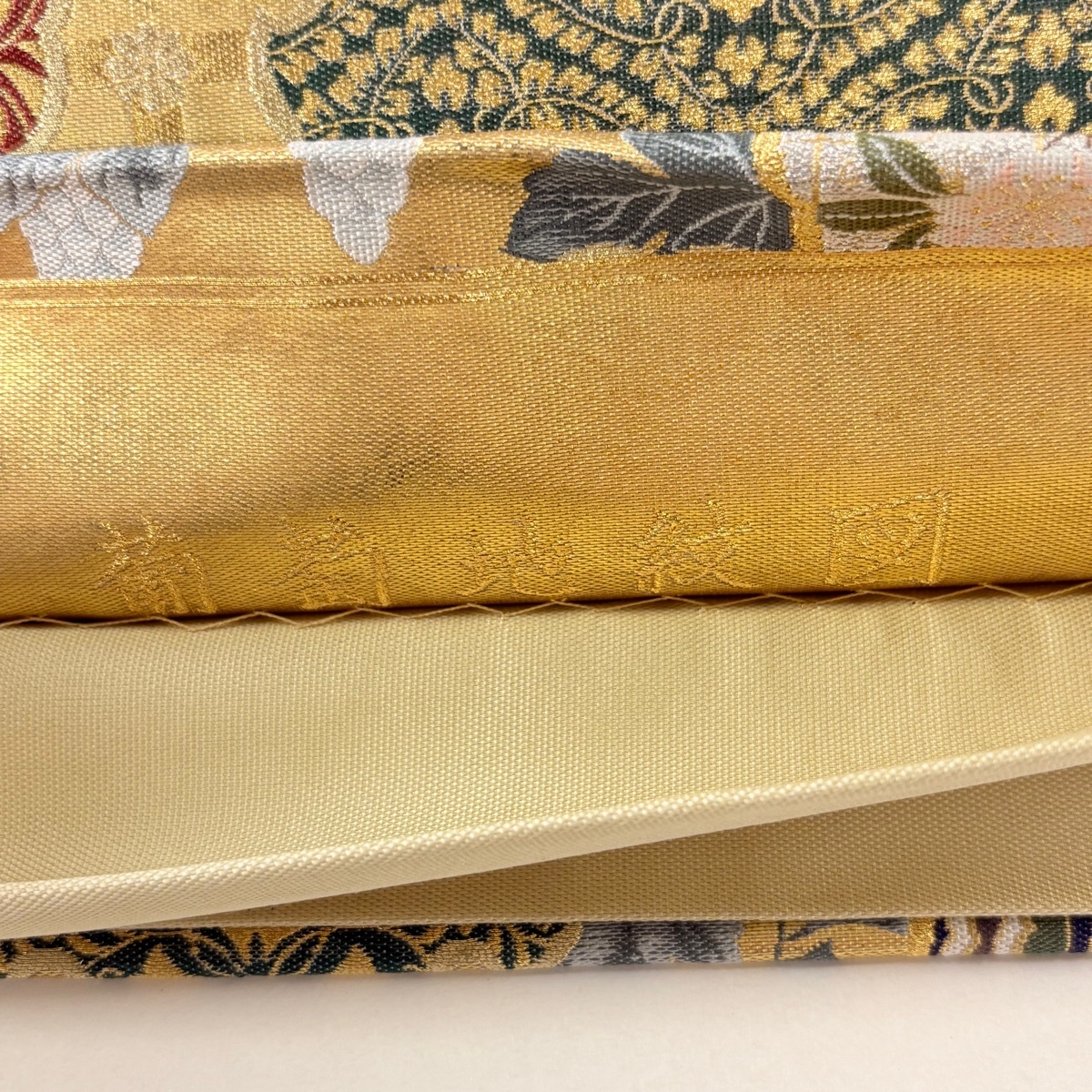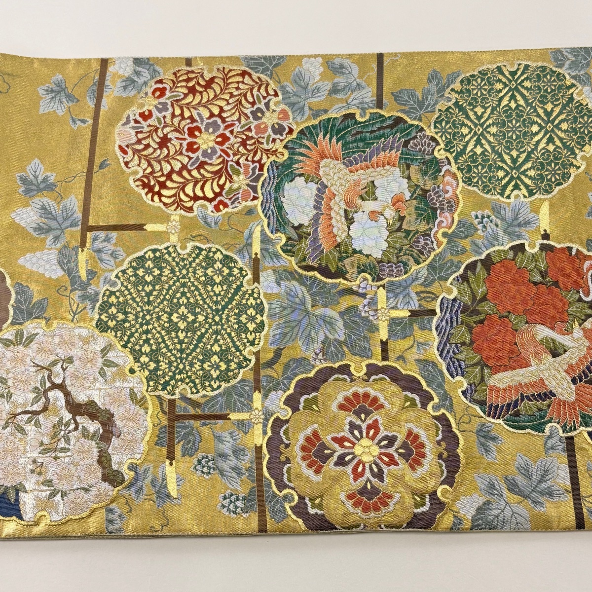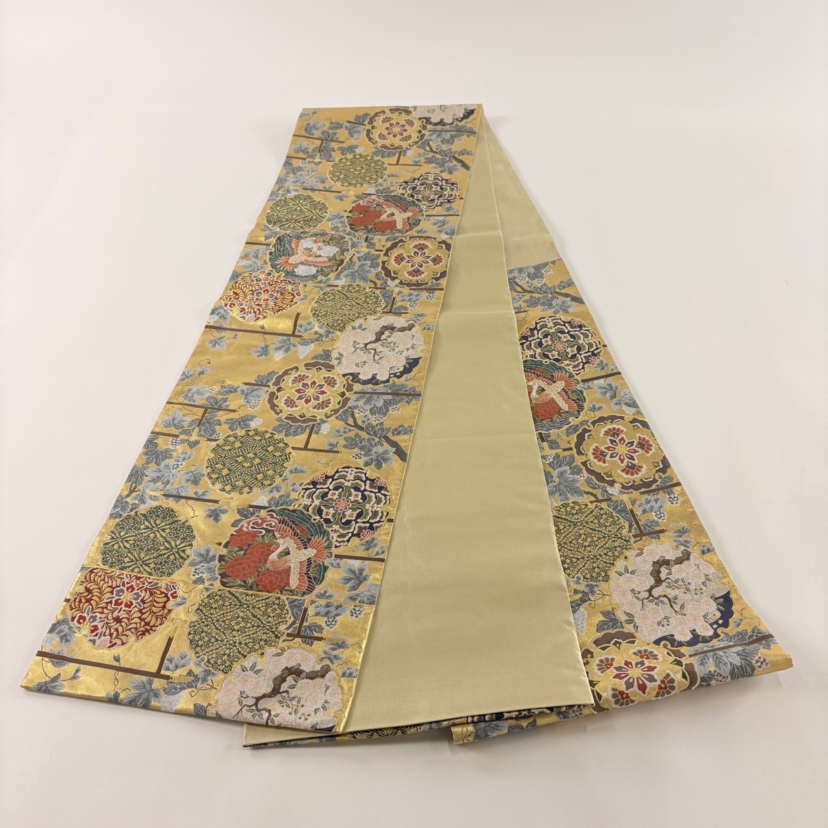 | 袋帯 美品 秀品 雪輪 花鳥 本金箔 金糸 金色 六通 正絹 【中古】 |