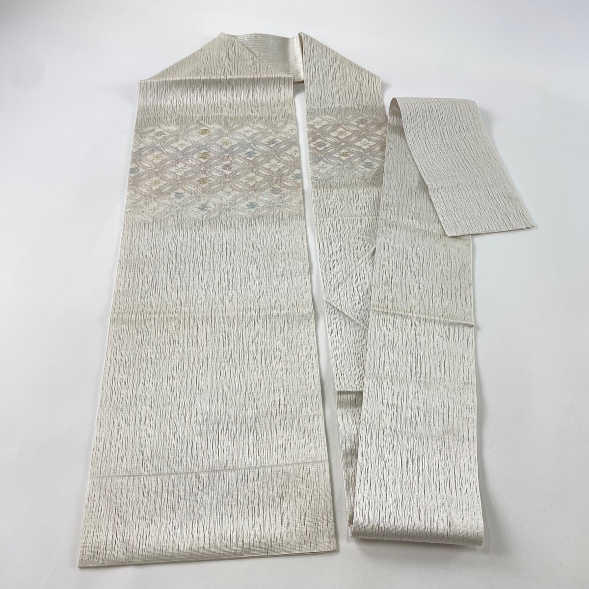 | 名古屋帯 名品 花菱 七宝 銀糸 クリーム 正絹 【中古】 |