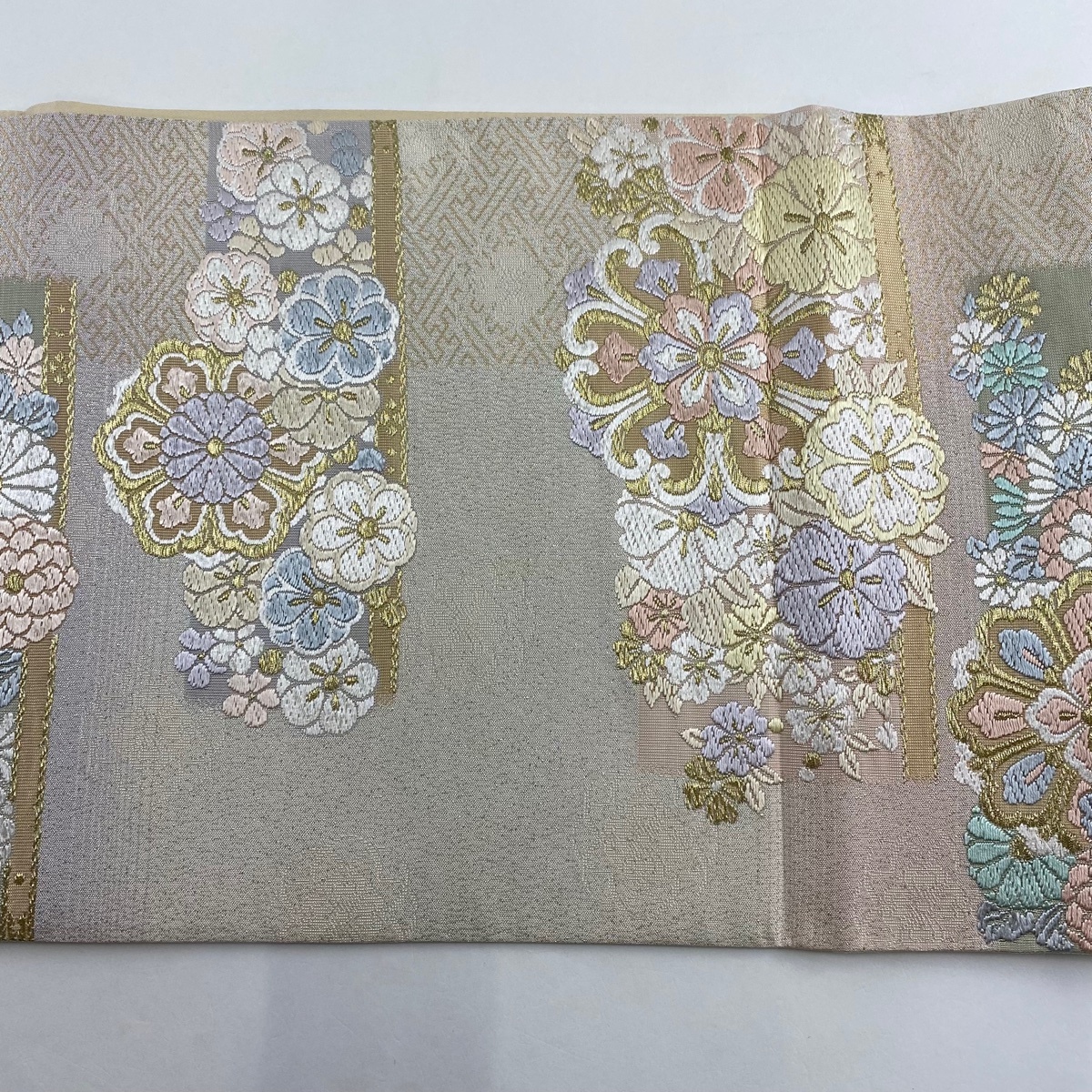 | 袋帯 美品 秀品 草花 金銀糸 灰色 六通 正絹 【中古】 |