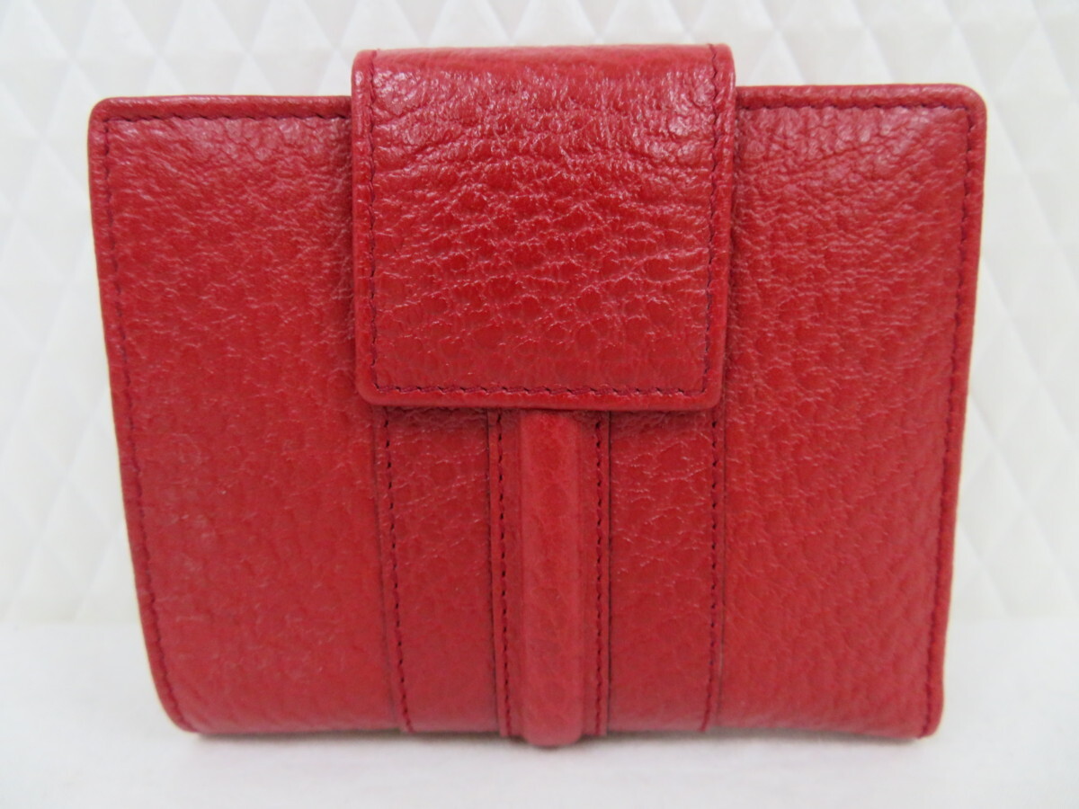 こちらのお品は赤の型押しカーフ素材のWホック財布です。