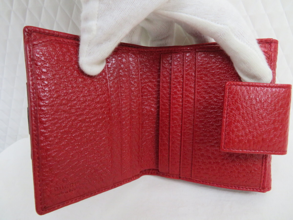 〔COLOURS〕 未使用・保管品■型押しカーフ■Wホック財布■G金具装飾■レッド×ゴールド■GUCCI