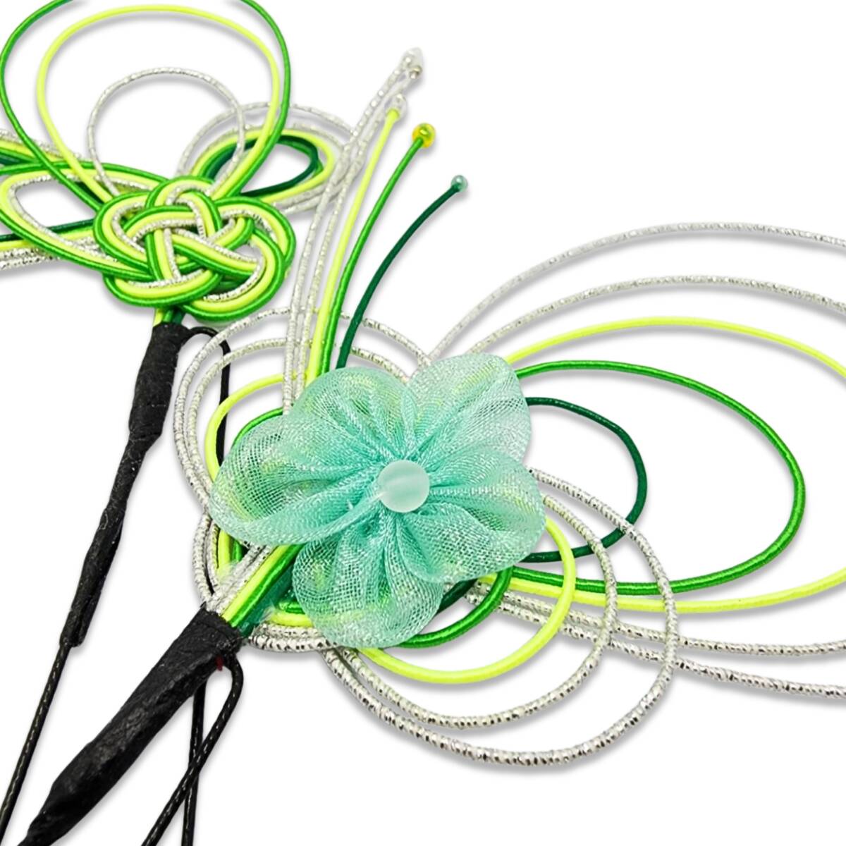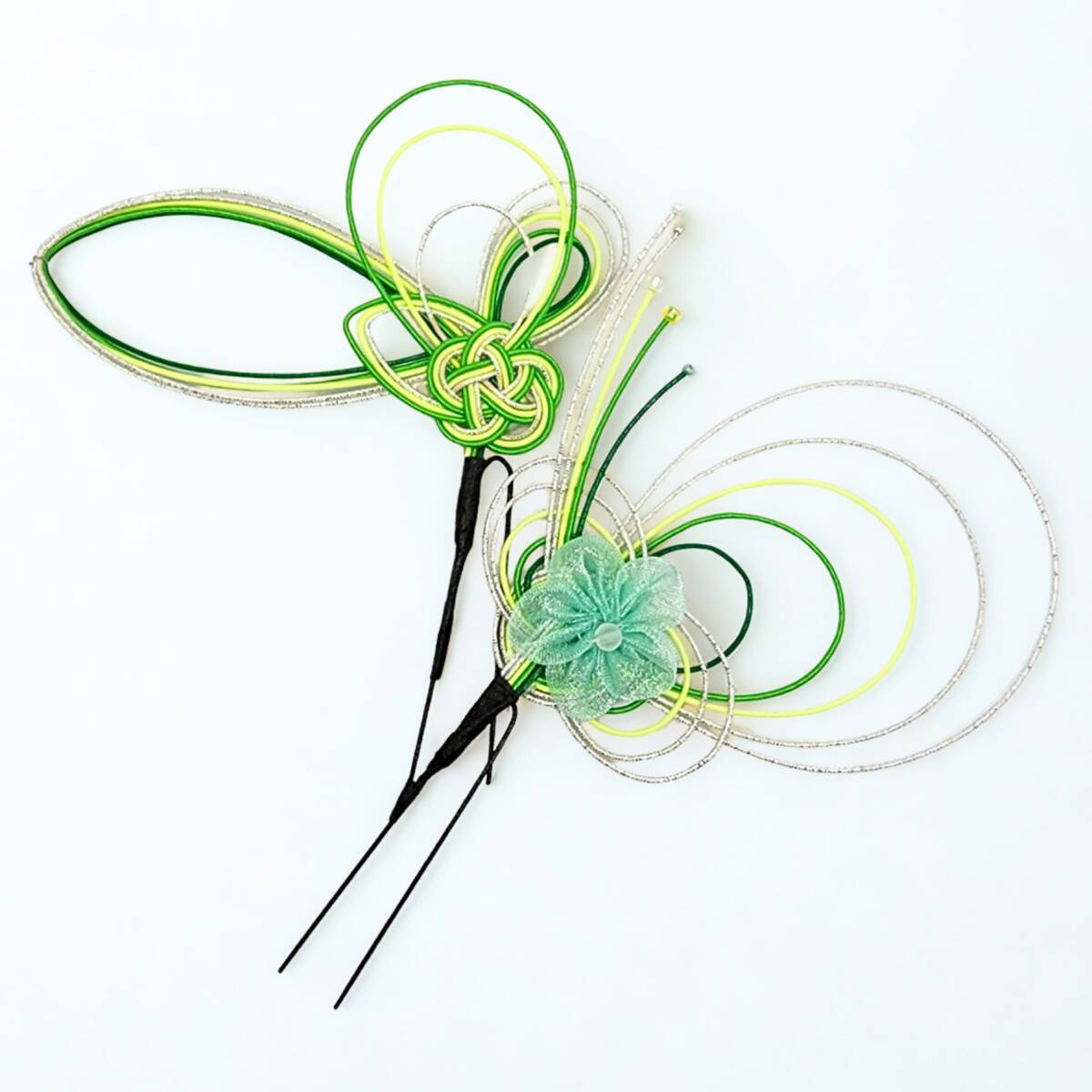 *緑霞* 七五三・成人式・卒業式にも|水引ヘアアクセサリー・ 天然石 晴れの日を迎える前のギフトにも