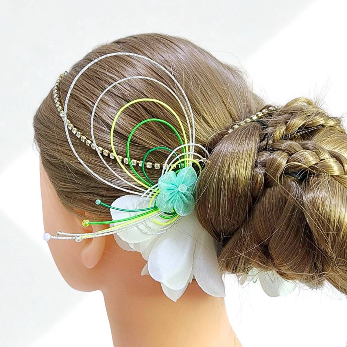 *緑霞* 七五三・成人式・卒業式にも|水引ヘアアクセサリー・ 天然石 晴れの日を迎える前のギフトにも