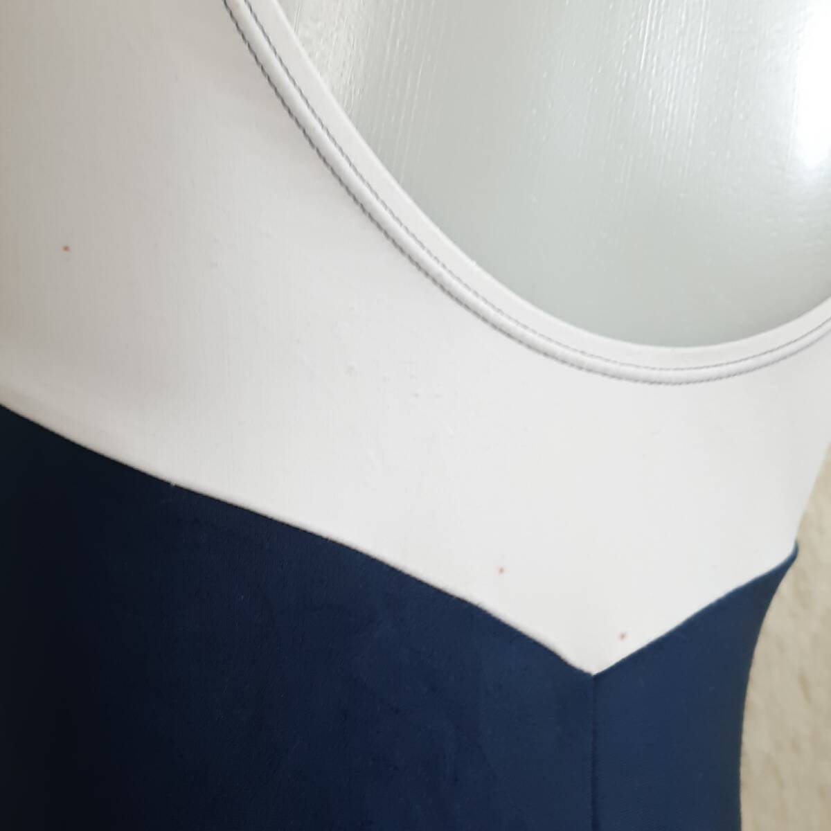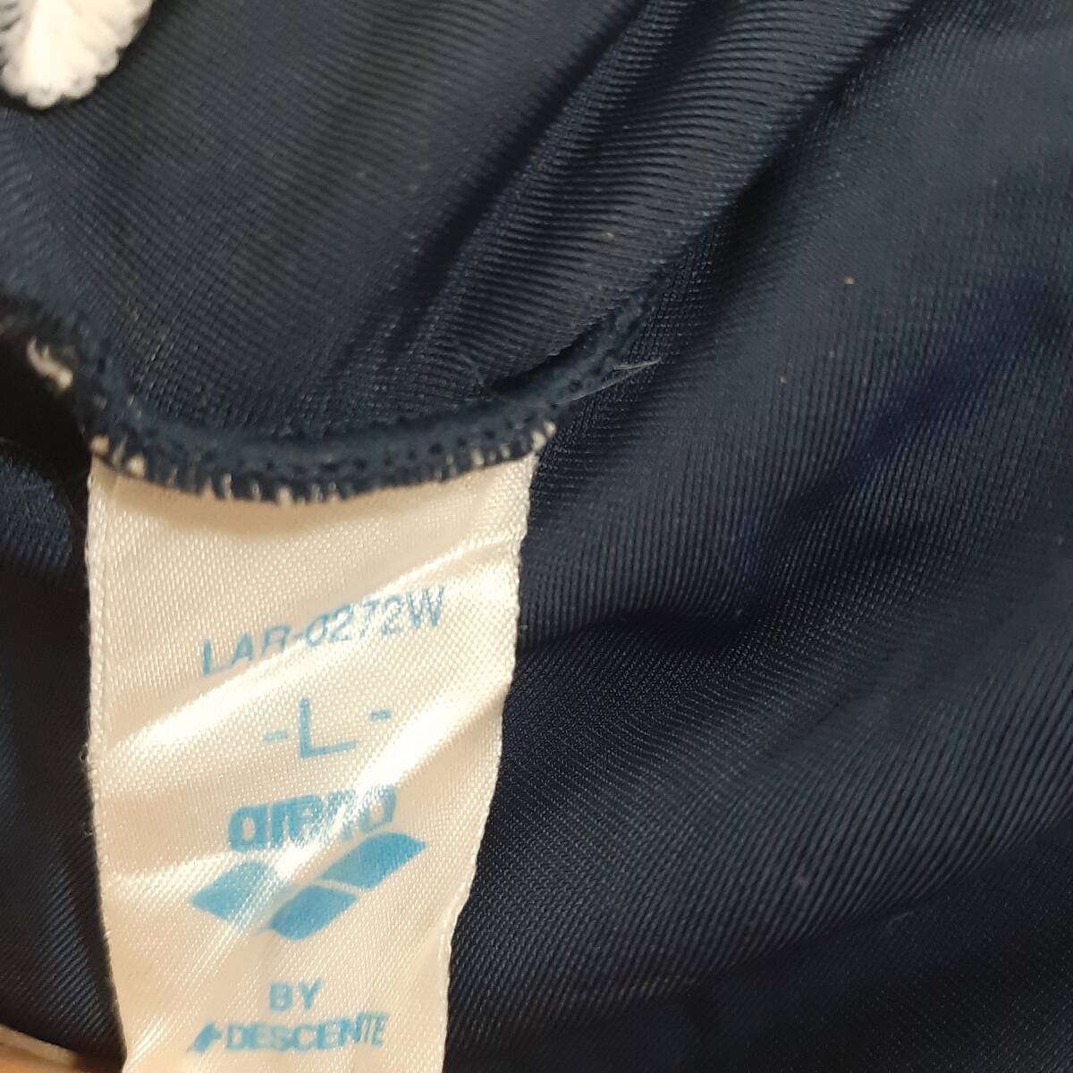 匿名配送★アリーナ arena デサント ショートジョン ハーフスパッツ ワンピース水着 スイムウェア L ツートン 紺白 日本製 キ
