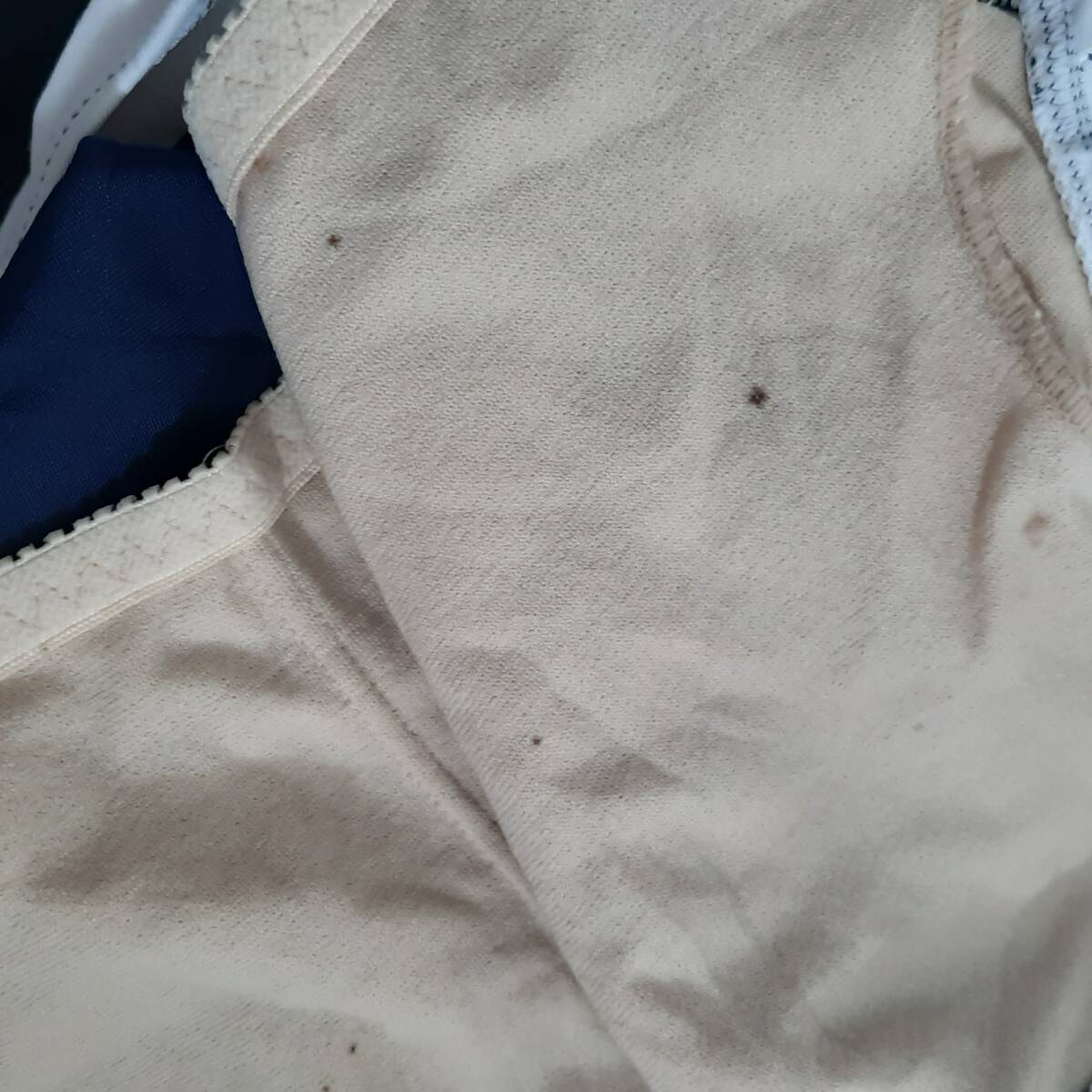 点汚れがある箇所やヒップあたりにや背中に毛羽立ちがあります。
