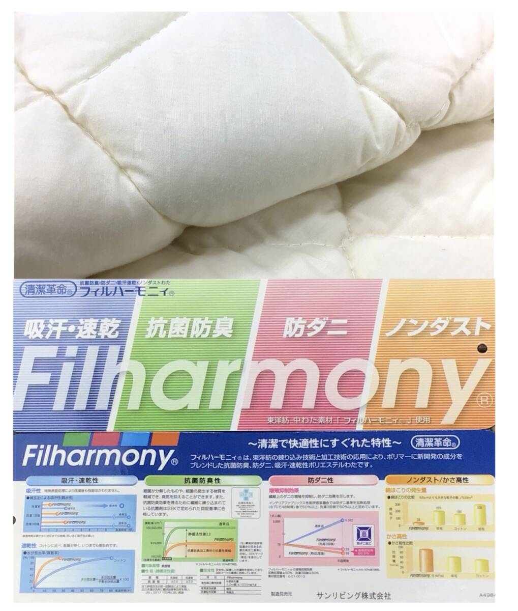新品・未使用 中わたに抗菌防臭・防ダニ効果 吸汗・速乾・ノンダスト・かさ高性の機能を持つ