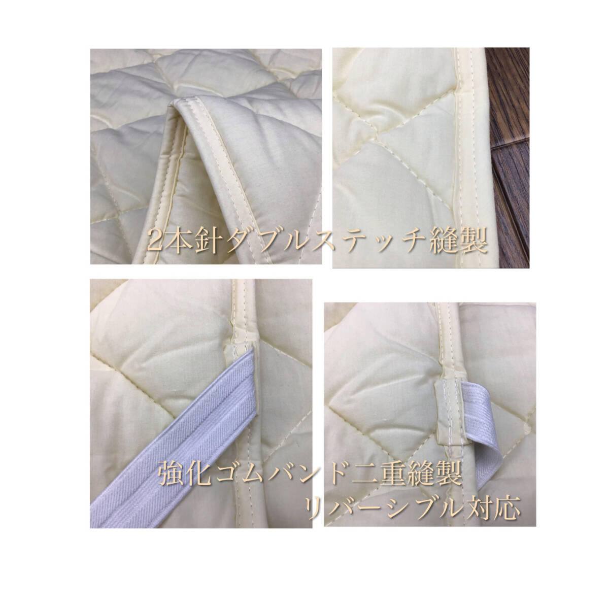 四隅に強化ゴムバンドが付いており、リバーシブル使いができるダブルステップ仕上げ ベットパット敷きパットとしても使えます。