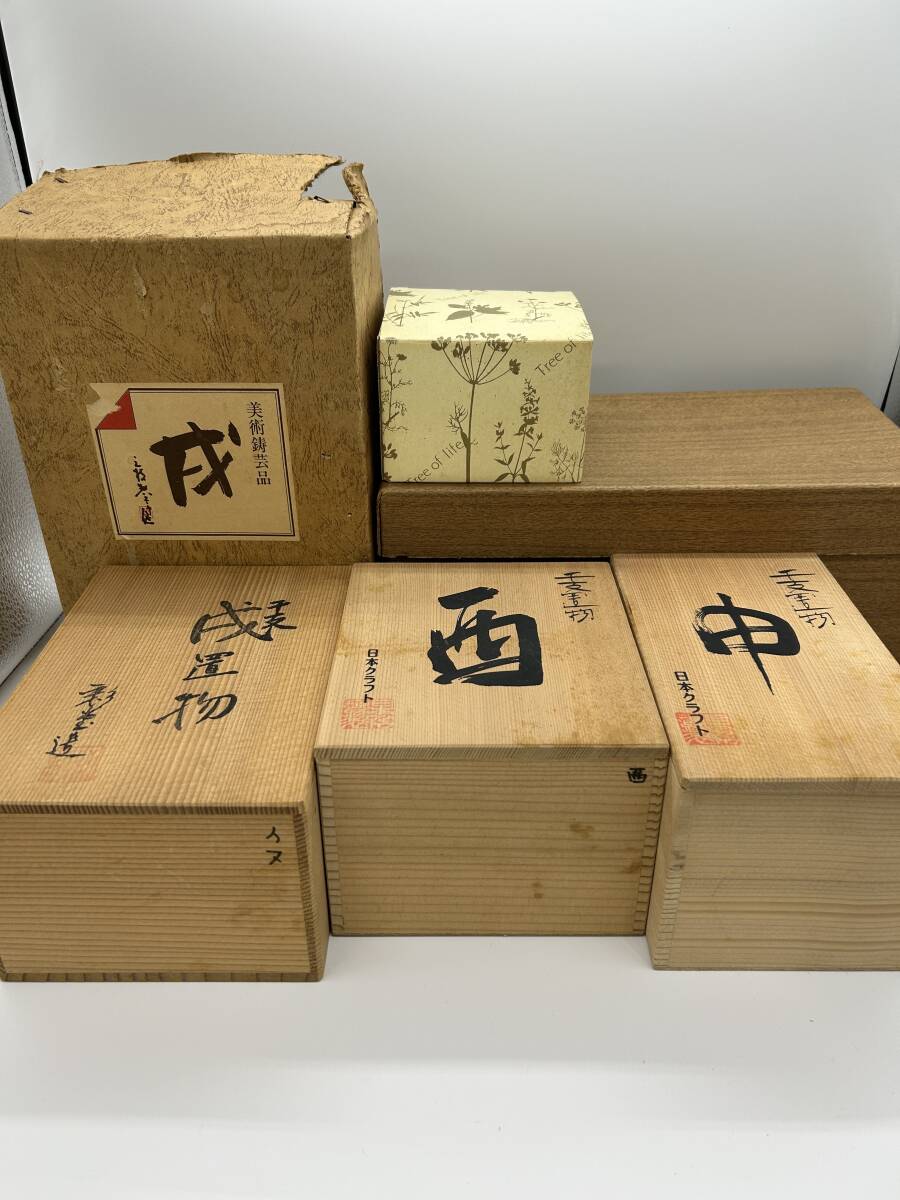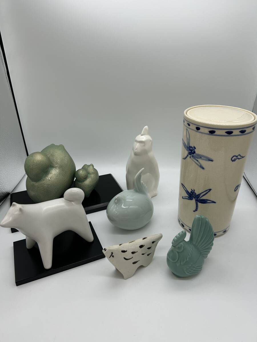 H171☆ 干支置物まとめ 水差し 日本クラフト 干支 戌 申 酉等 陶器 美術鋳芸品 飾り 桐箱 置台 彩堂造 縁起物 インテリア 茶道具