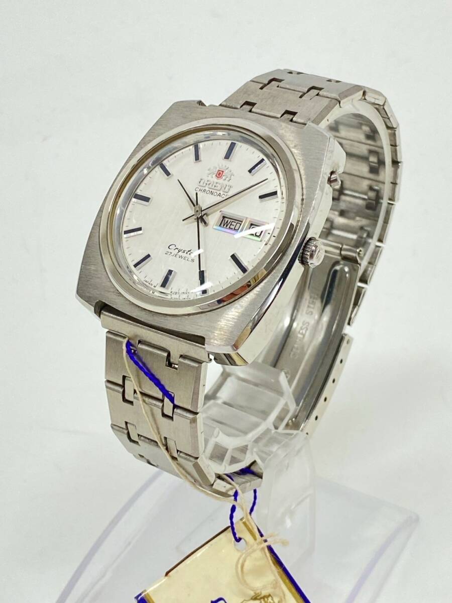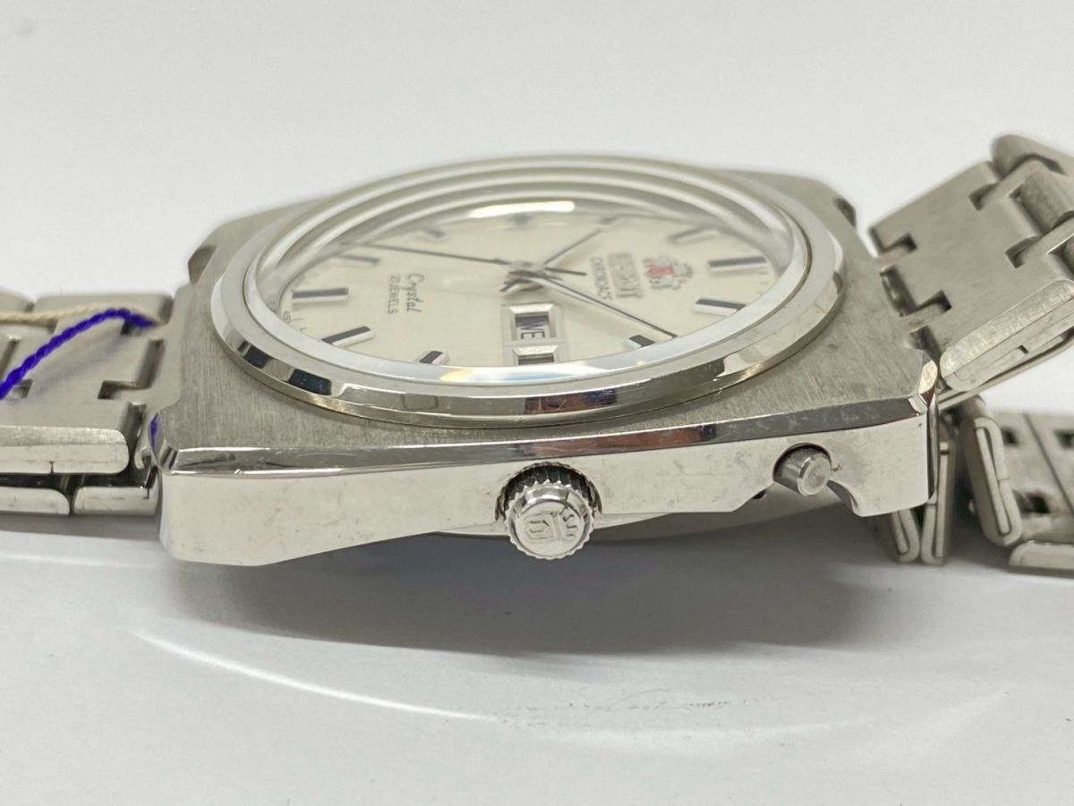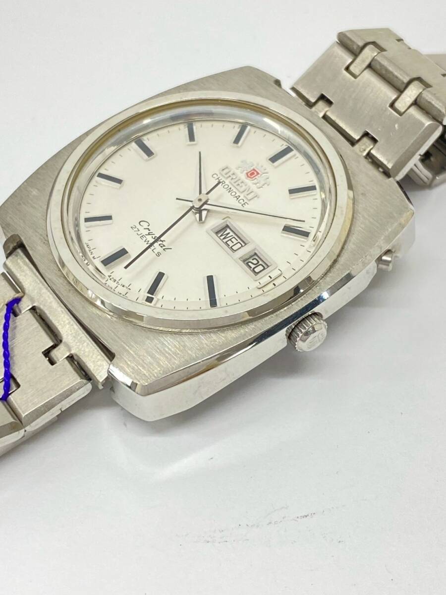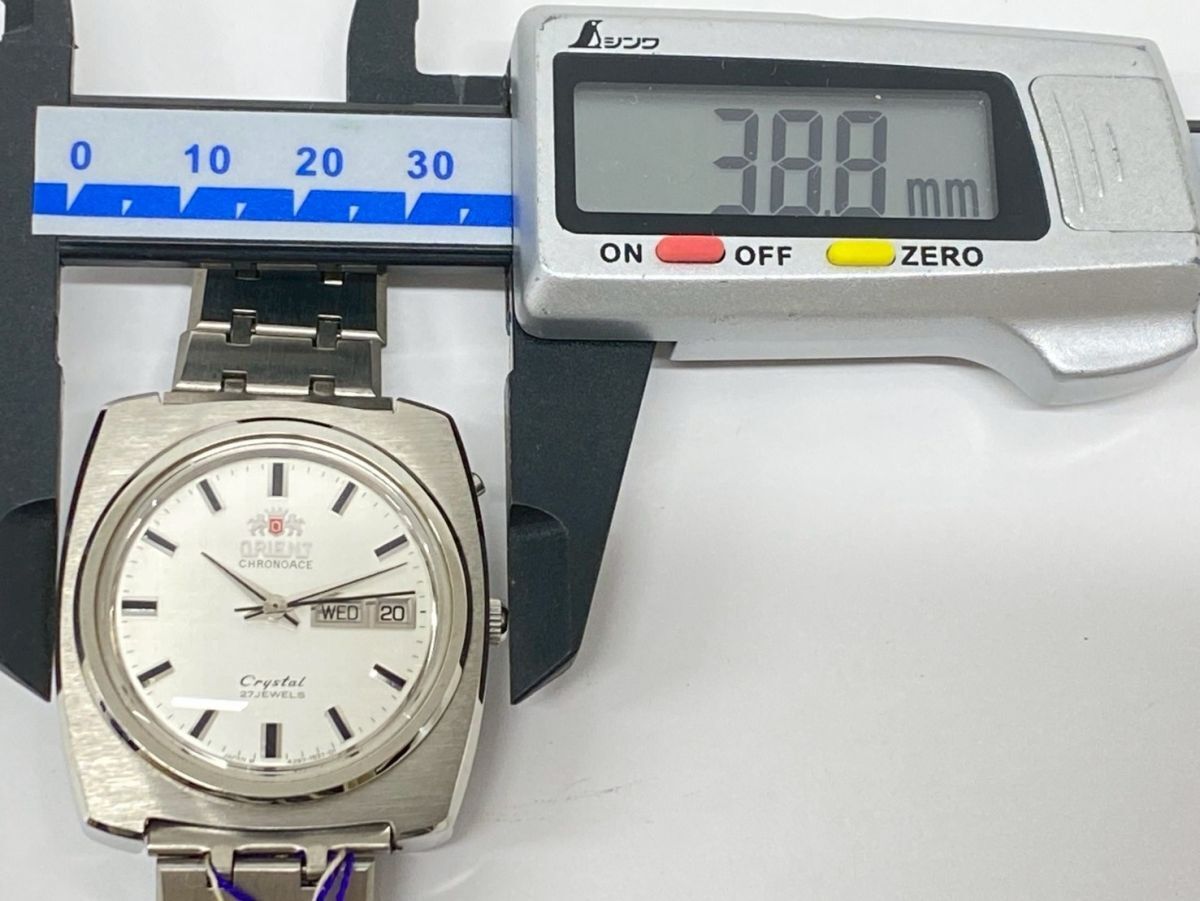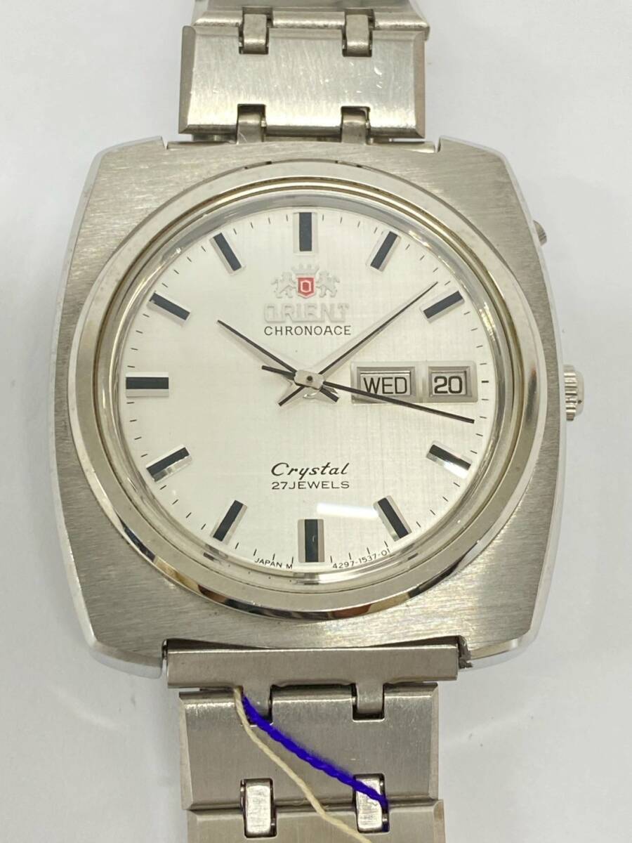 ♪ha4122-1 728 デッドストック ORIENT オリエント CHRONOACE Crystal 27石 429-15370 銀文字盤 自動巻 デイデイト メンズ 腕周り18cm 稼働