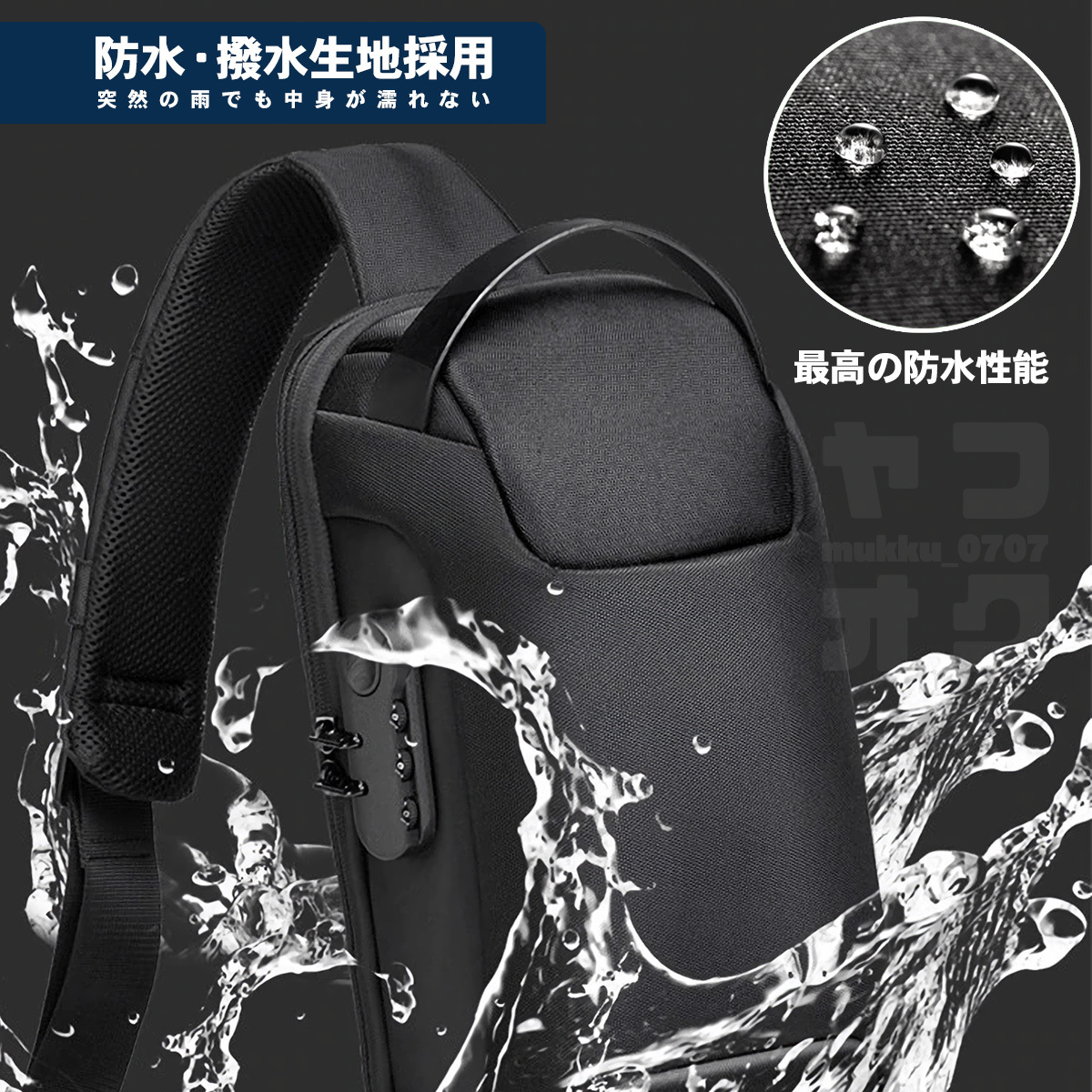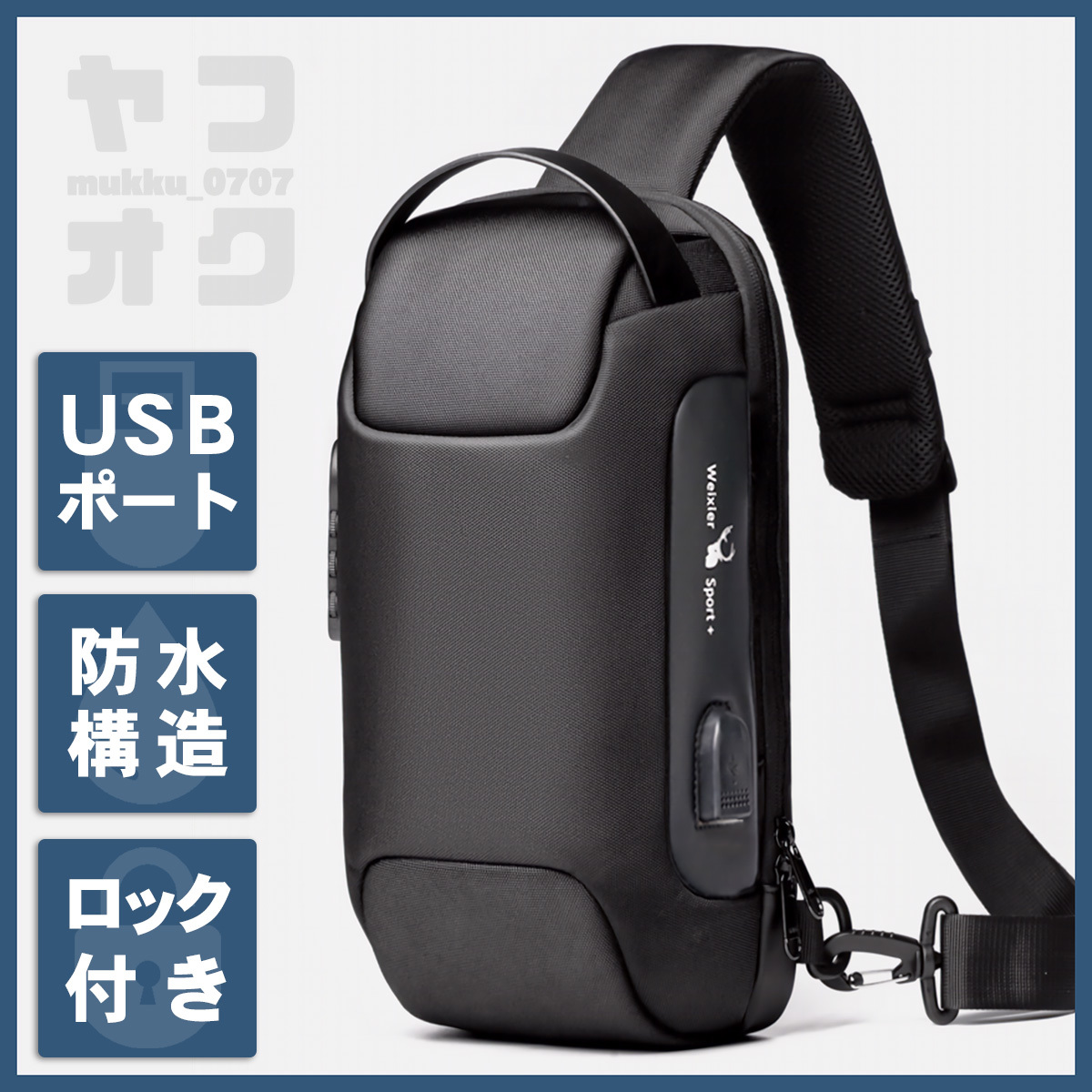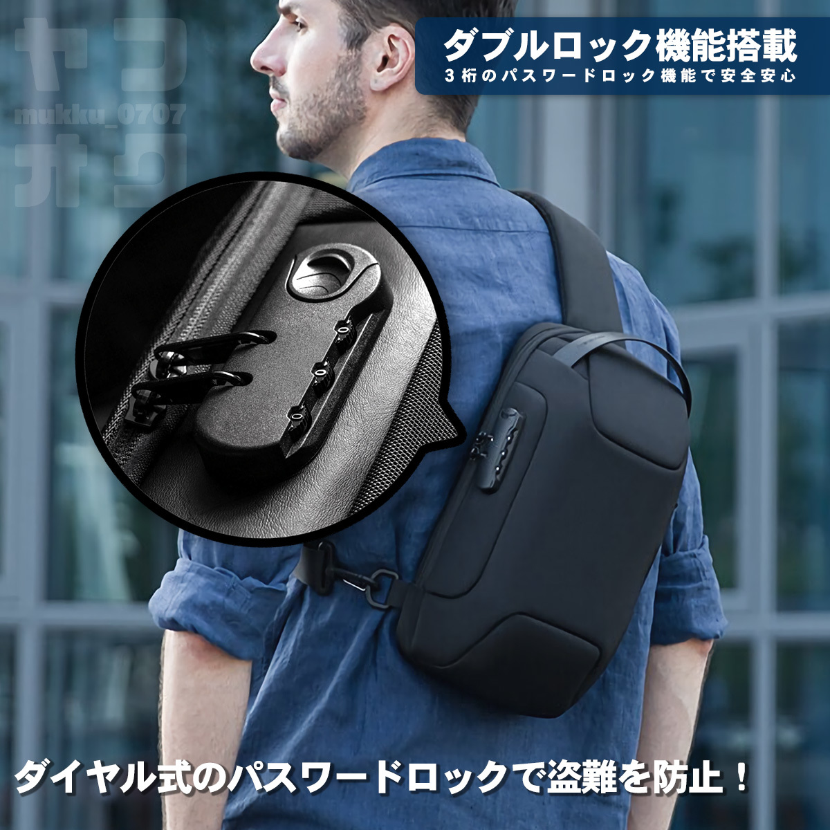 【送料無料】メンズショルダーバッグUSB付き軽量防水撥水盗難防止大容量ロックウエストポーチボディトラベル旅行ジョギングおしゃれ K-4