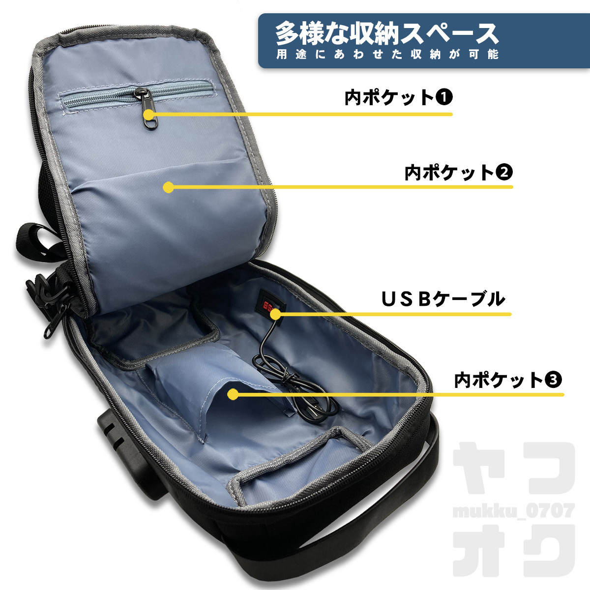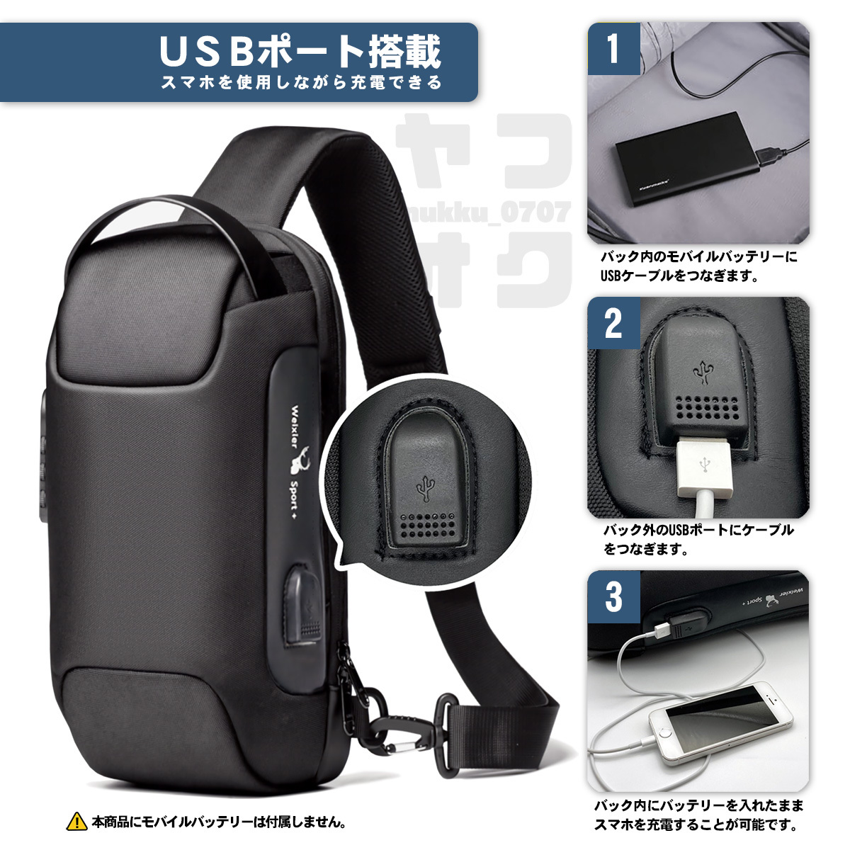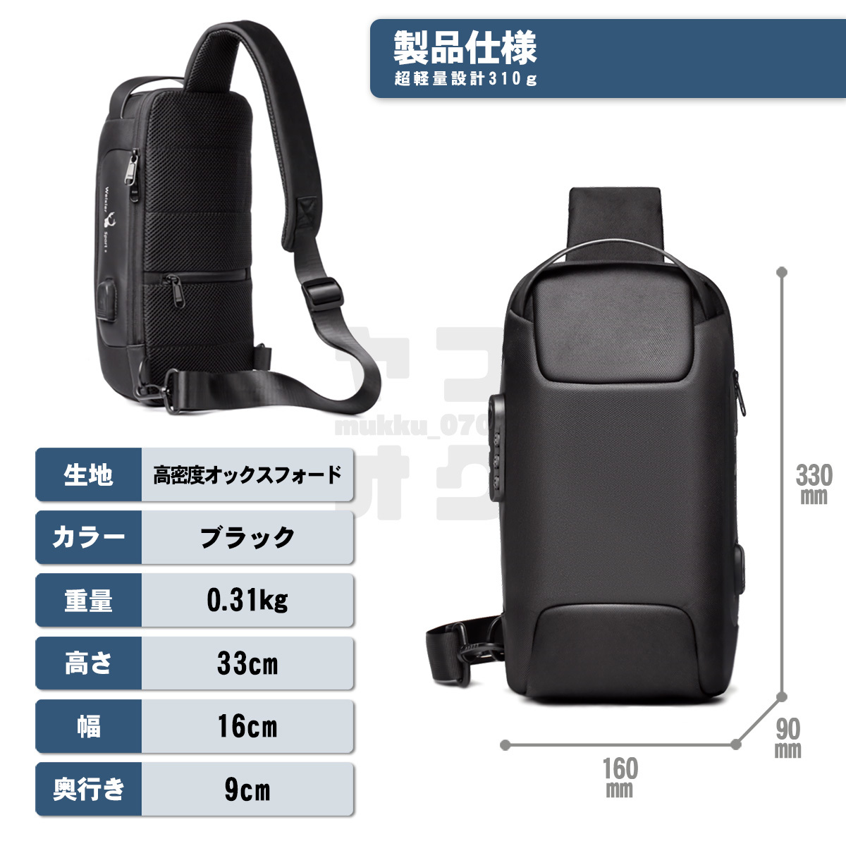 【送料無料】メンズショルダーバッグUSB付き軽量防水撥水盗難防止大容量ロックウエストポーチボディトラベル旅行ジョギングおしゃれ K-4