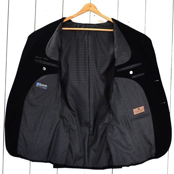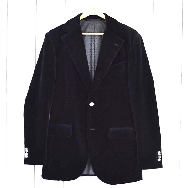 2つボタンシングル。ベルベット。フラップポケット。サイドベンツ。袖口4つボタン。本切羽。総裏地仕上げ。ネーム刺繍あり。この機会に是非!