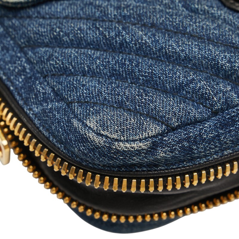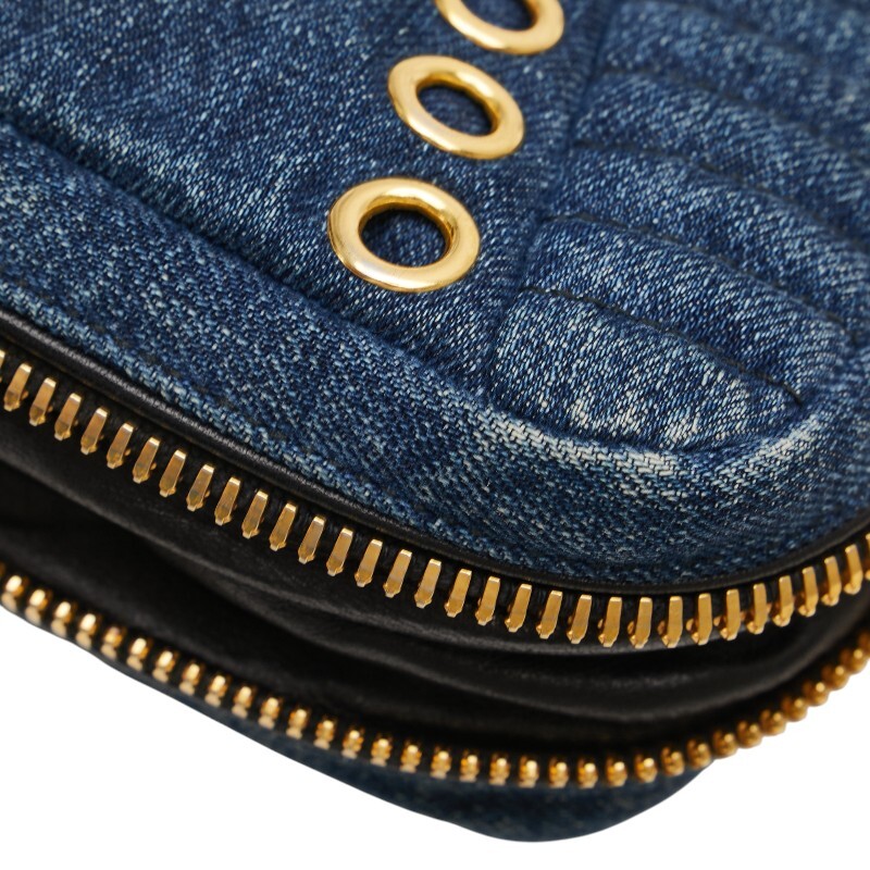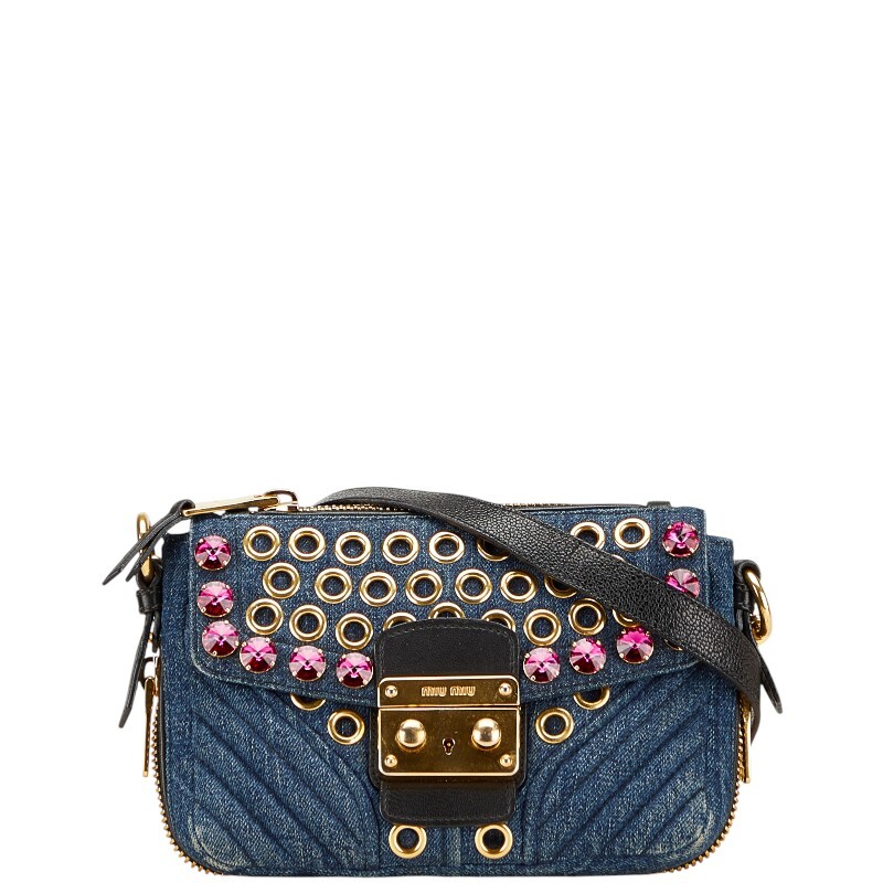 ミュウミュウ ビジュー 斜め掛け ショルダーバッグ インディゴブルー マルチカラー デニム レザー レディース MIUMIU 【中古】