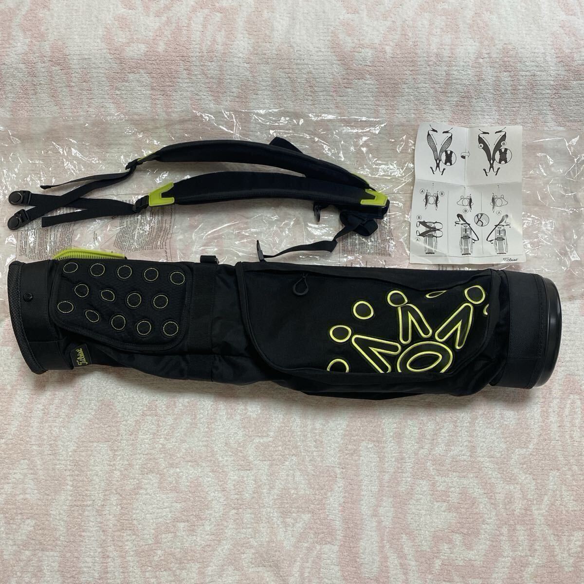 スタンドをつけてミニキャディバッグに加工できるようです。当方メンバーのゴルフ場がミニバッグ禁止のため、ラウンドでは使用しておりません。一度のみ、練習場に持っていきました。底面も複数枚撮影いたしました。目につくような傷も見受けられないと思います。その後は居宅内クローゼットに保管しております。ポケットは未使用です。