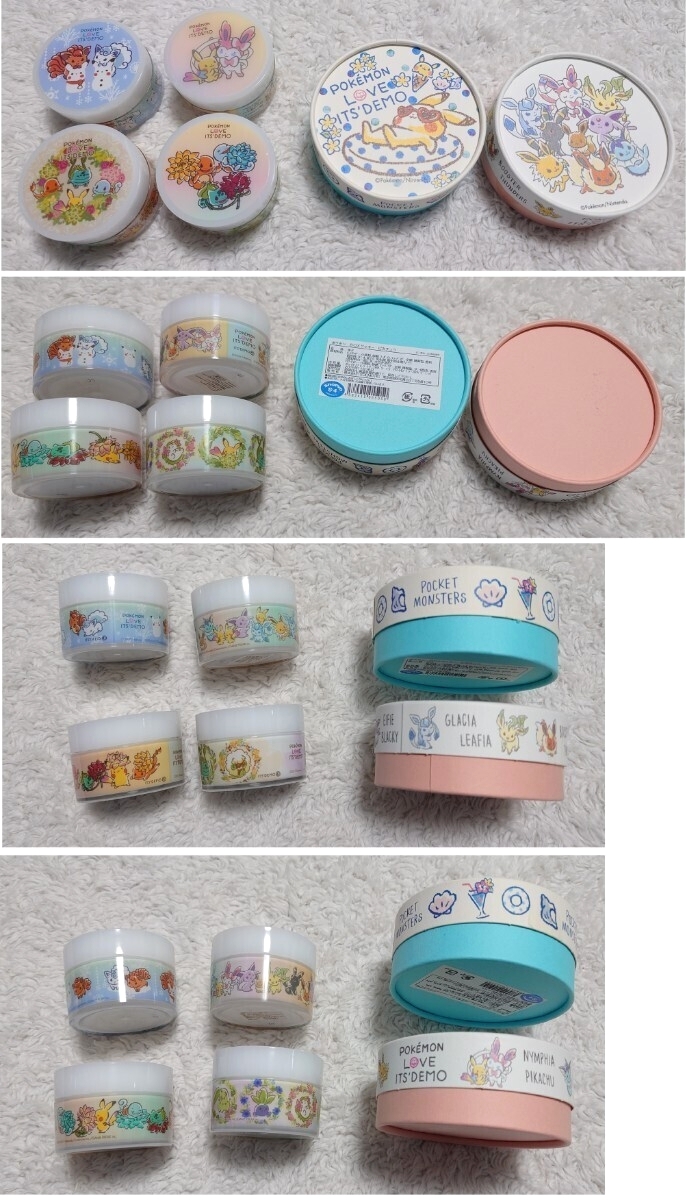 紙製の丸い箱のピンクは裏面の成分表示シールを剥がした時のダメージあります。(写真5枚目)