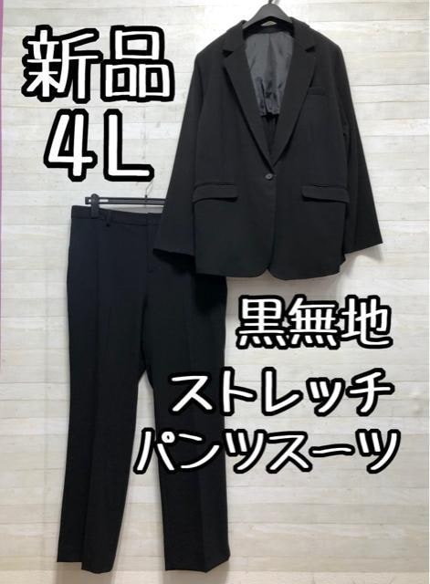 新品☆4L♪黒無地パンツスーツ♪ストレッチ♪ストレートパンツ☆Q426
