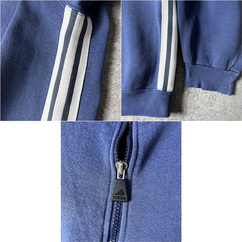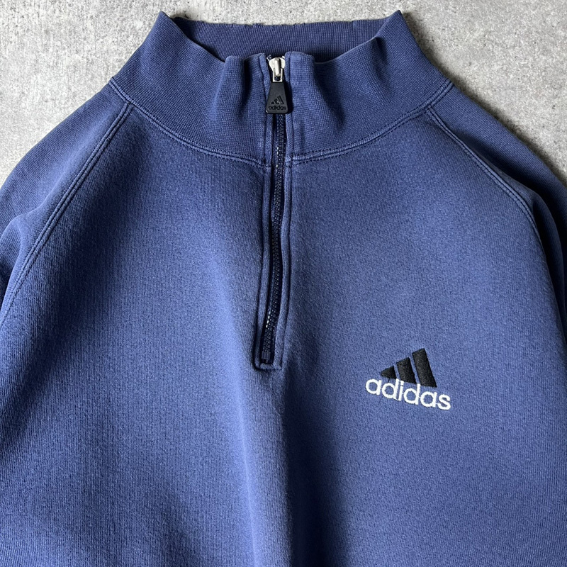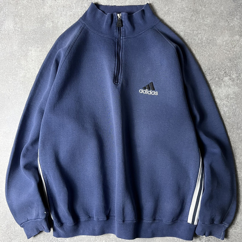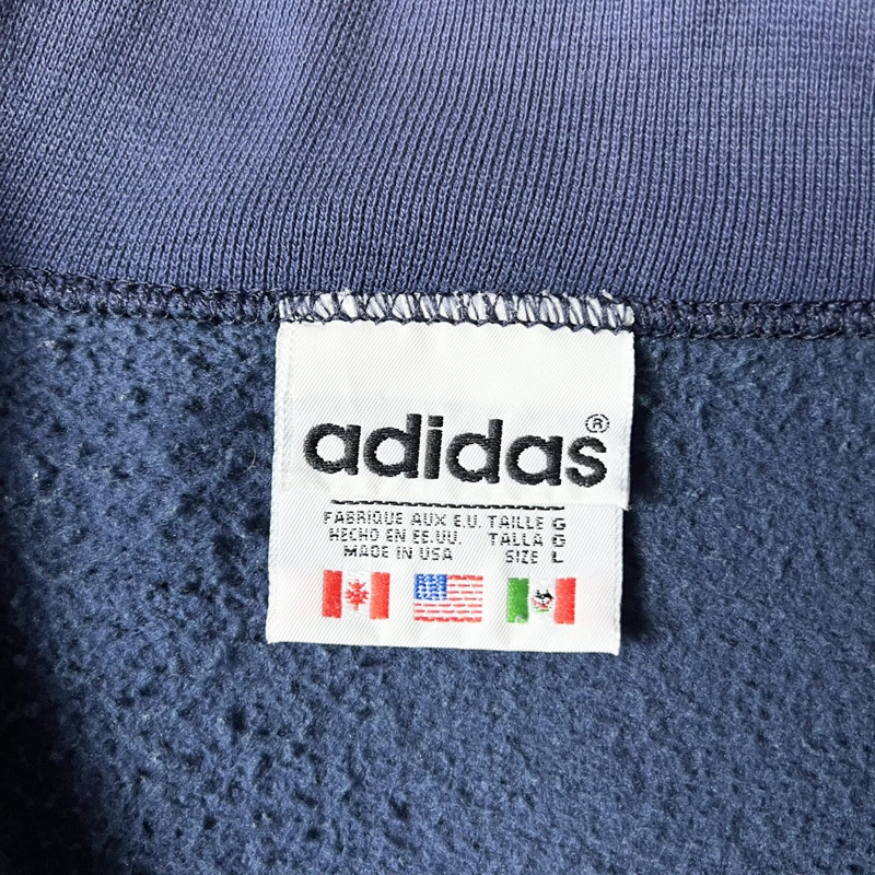 雰囲気系 90s USA製 adidas ロゴ 刺繍 3ストライプ ハーフジップ プルオーバー スウェット トレーナー L / 90年代 アメリカ製 アディダス