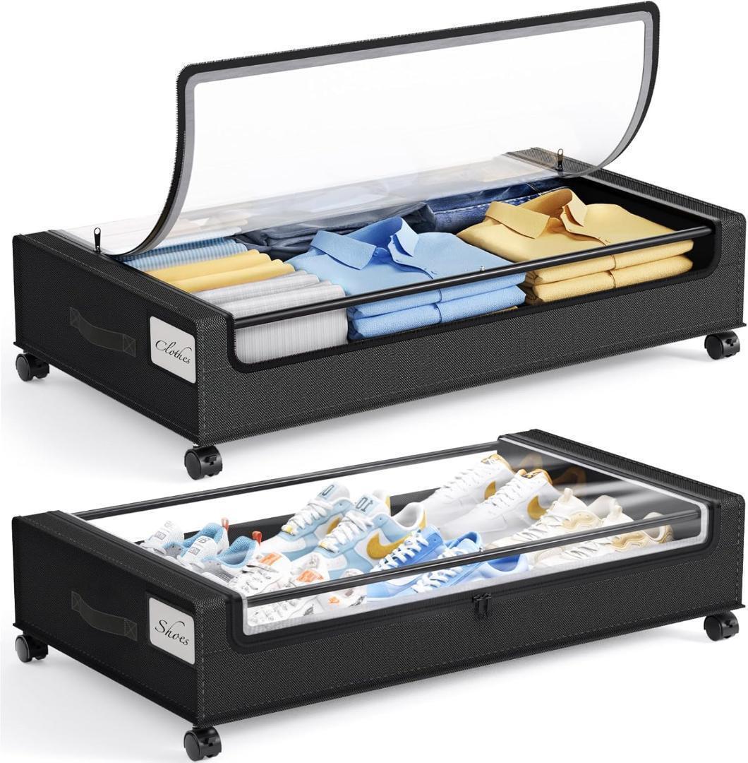 重い収納ボックスを頻繁に家の中で動かすことにうんざりしていませんか 当社のキャスター付きベッド下収納は、2つの補強ハンドルと4つの360°回転ホイールを備えており、ベッド下の収納コンテナを床やカーペットに簡単にスライドさせることができます。 2つの車輪にはロック機能があり、静止する必要があるときはロック機構を優しく押すだけです。