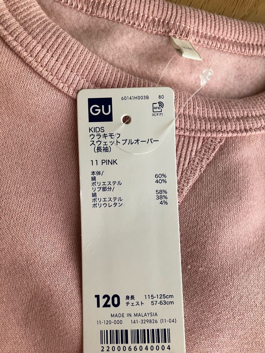 新品 女の子 GU 裏起毛スウェットプルオーバー トレーナー 120 ピンク